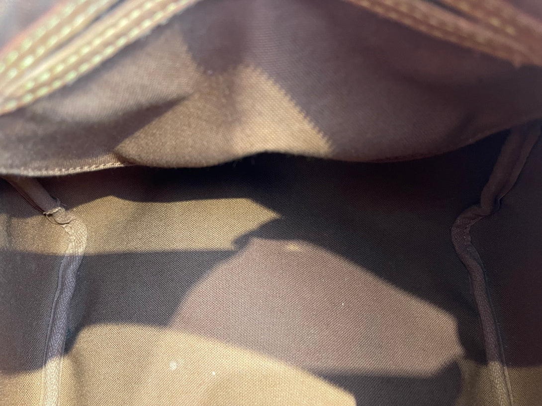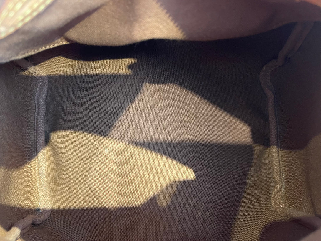 Good: Items show more prominent wear such as noticeable discoloration, stains and snags to fabric. May have worn corners and handles, tarnishing to hardware and creasing to leather. Pen or make up marks may be visible in the interior of the bag.