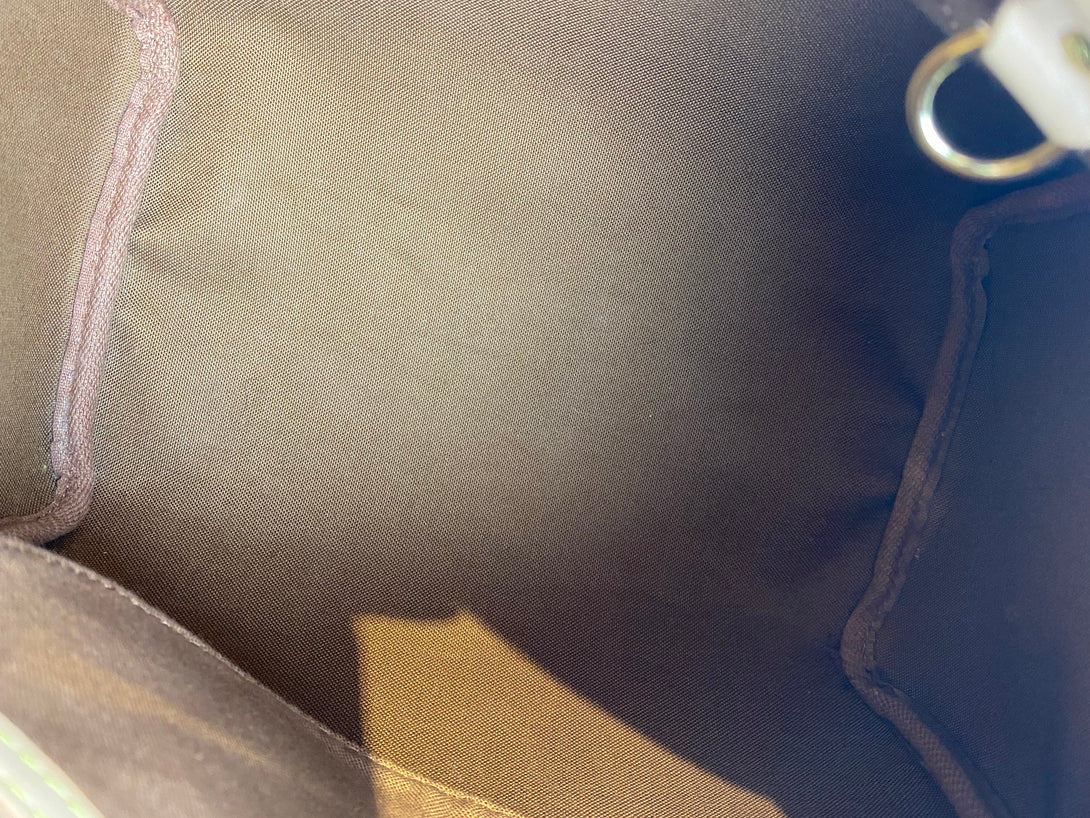 Good: Items show more prominent wear such as noticeable discoloration, stains and snags to fabric. May have worn corners and handles, tarnishing to hardware and creasing to leather. Pen or make up marks may be visible in the interior of the bag.