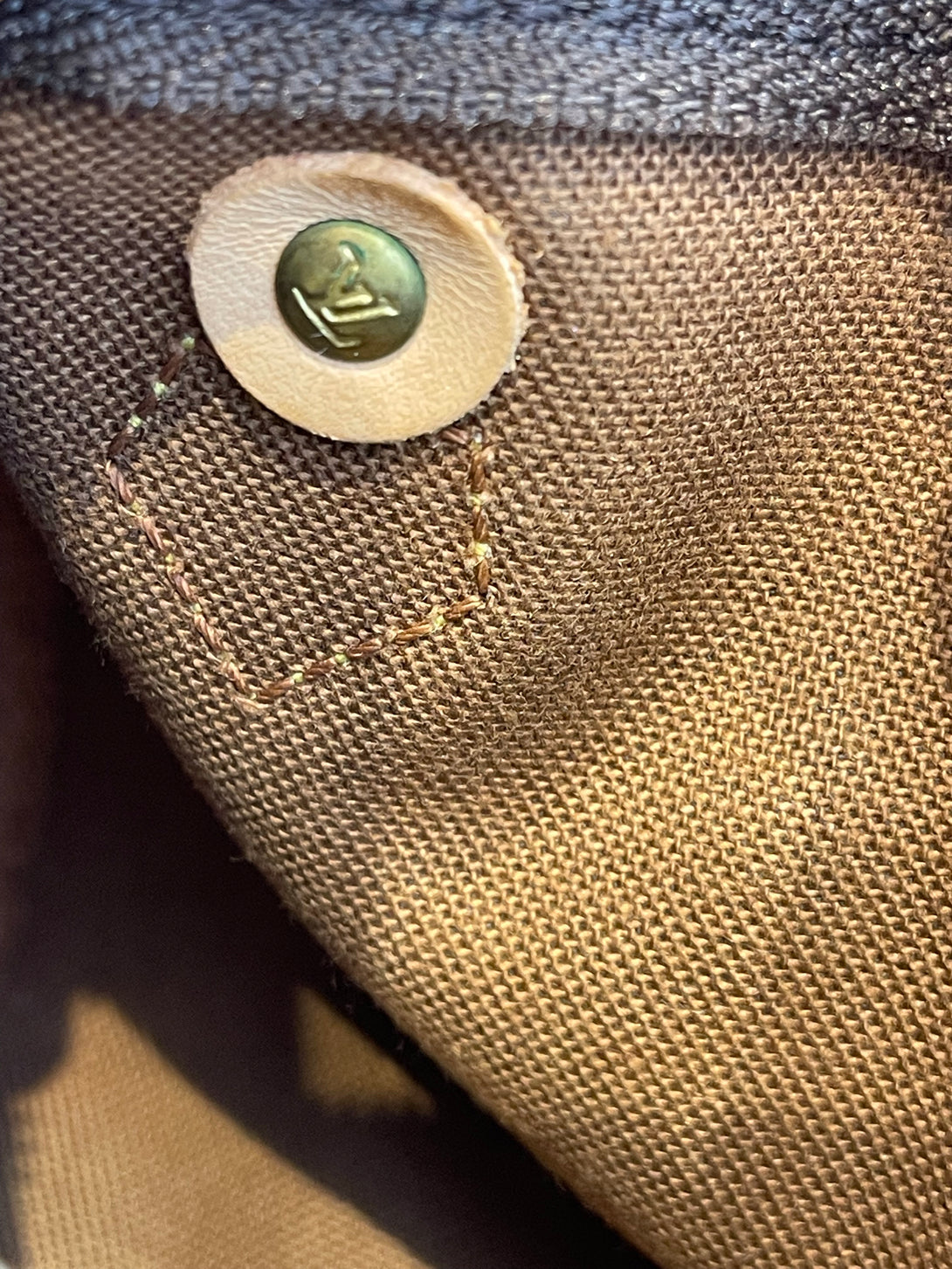 Good: Items show more prominent wear such as noticeable discoloration, stains and snags to fabric. May have worn corners and handles, tarnishing to hardware and creasing to leather. Pen or make up marks may be visible in the interior of the bag.