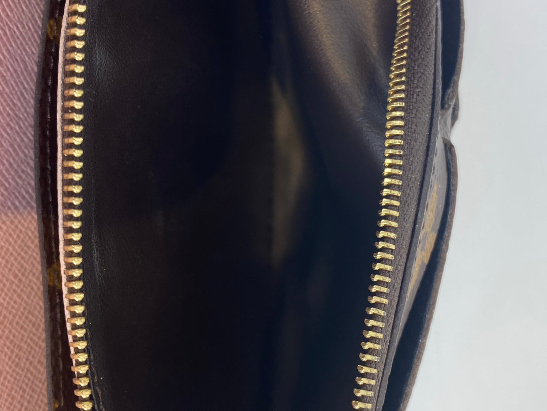 Fair: Very prominent wear, may have holes on corners, severe scuffs, piping of bag showing and pen marks to exterior. Interior may have pen or make up marks.