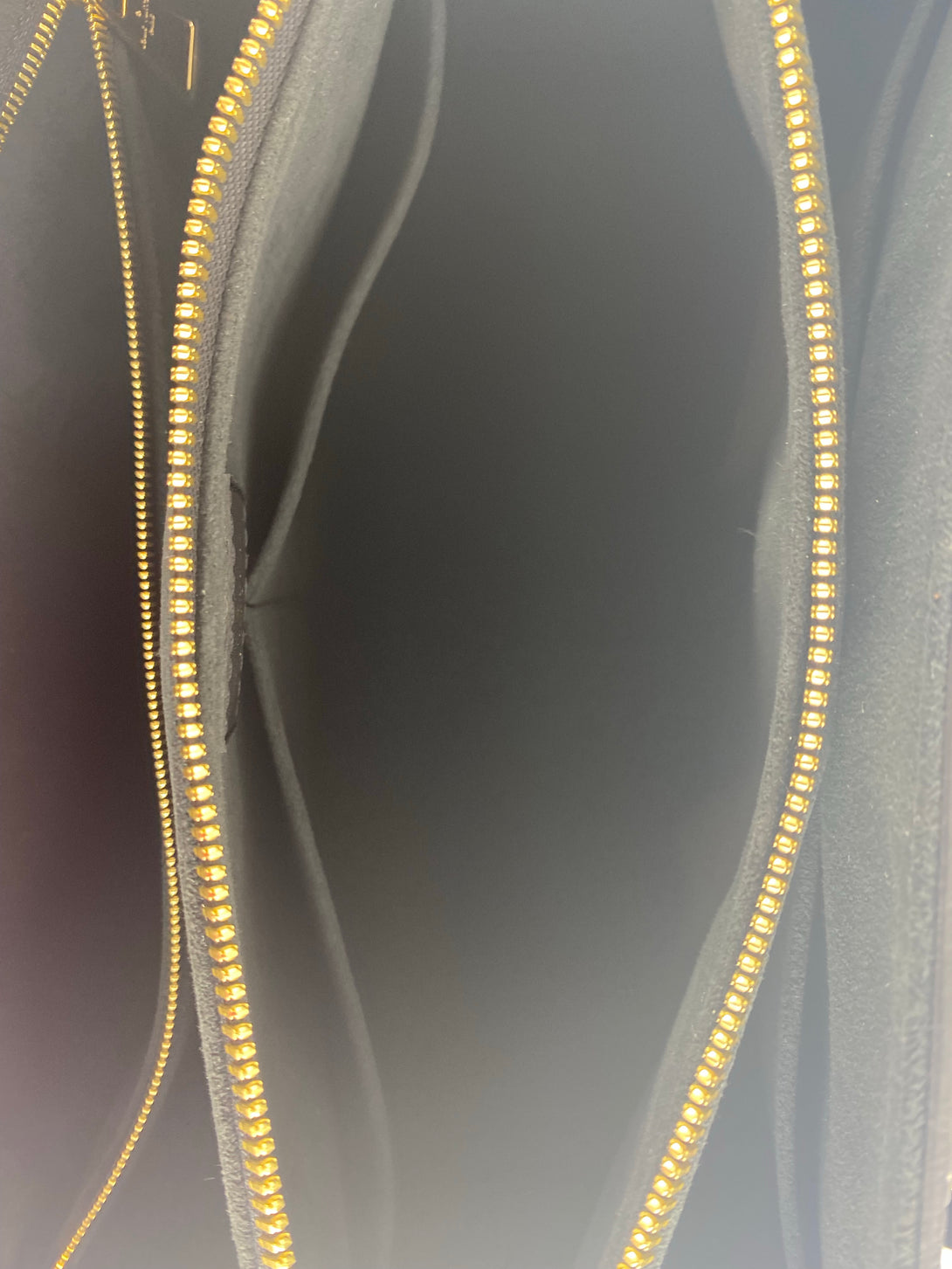 Fair: Very prominent wear, may have holes on corners, severe scuffs, piping of bag showing and pen marks to exterior. Interior may have pen or make up marks.