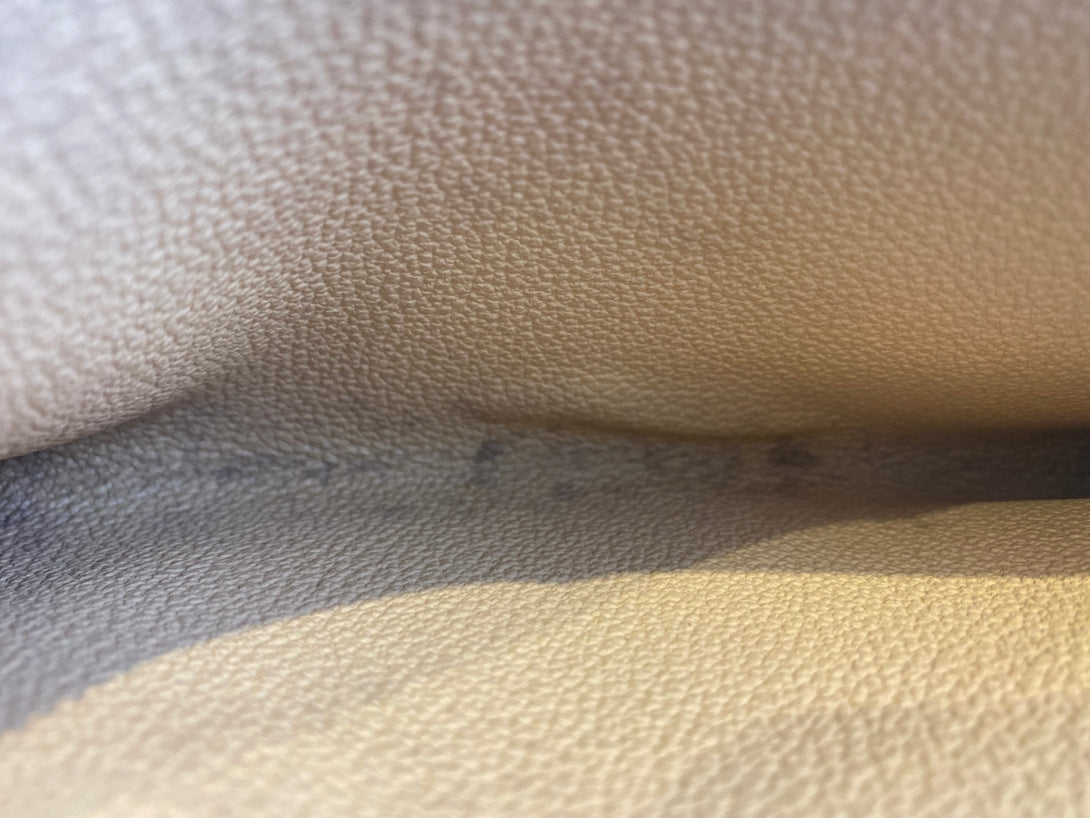 Good: Items show more prominent wear such as noticeable discoloration, stains and snags to fabric. May have worn corners and handles, tarnishing to hardware and creasing to leather. Pen or make up marks may be visible in the interior of the bag.