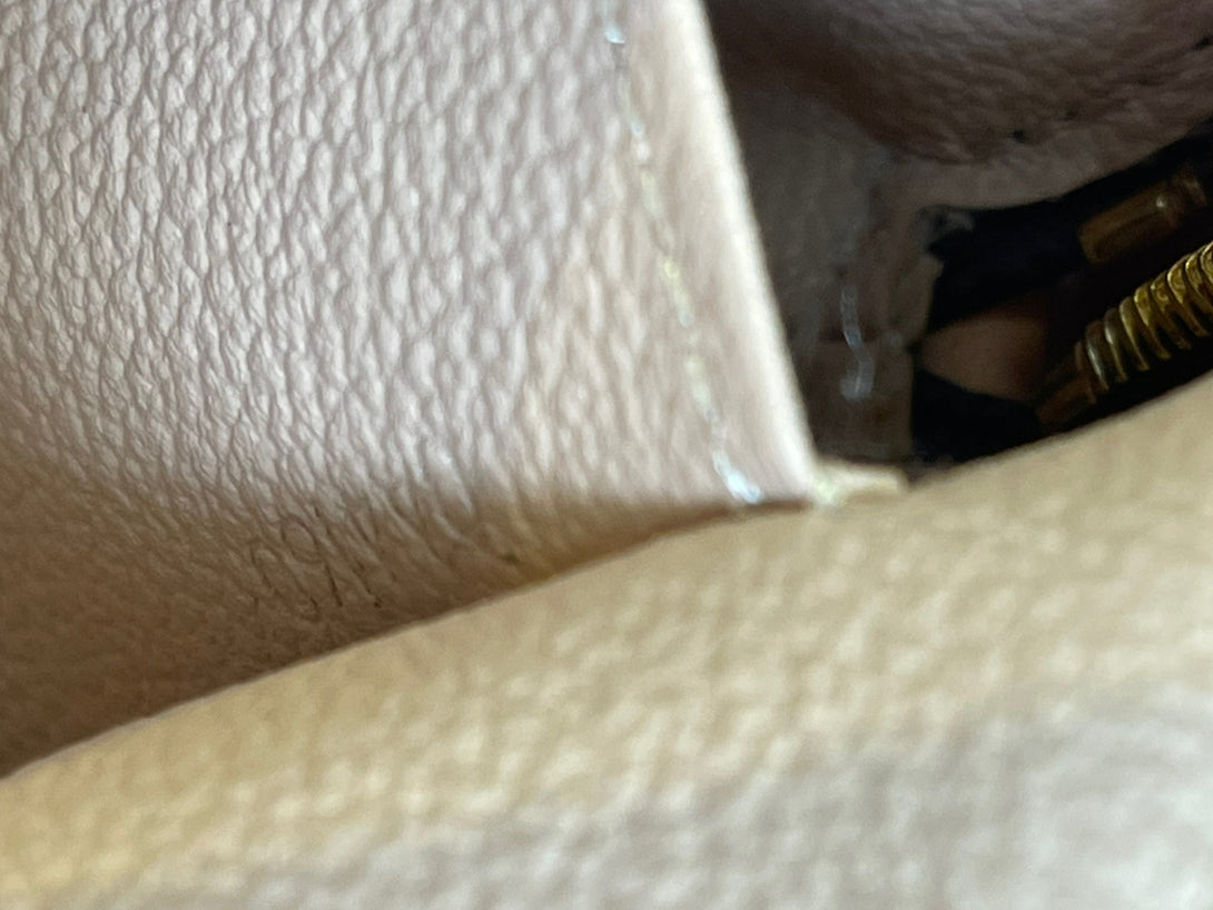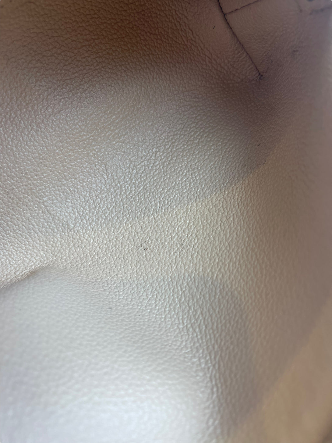 Good: Items show more prominent wear such as noticeable discoloration, stains and snags to fabric. May have worn corners and handles, tarnishing to hardware and creasing to leather. Pen or make up marks may be visible in the interior of the bag.