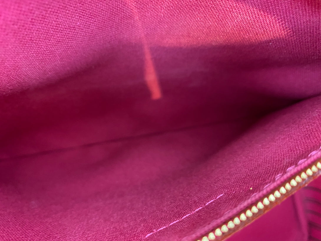Good: Items show more prominent wear such as noticeable discoloration, stains and snags to fabric. May have worn corners and handles, tarnishing to hardware and creasing to leather. Pen or make up marks may be visible in the interior of the bag.