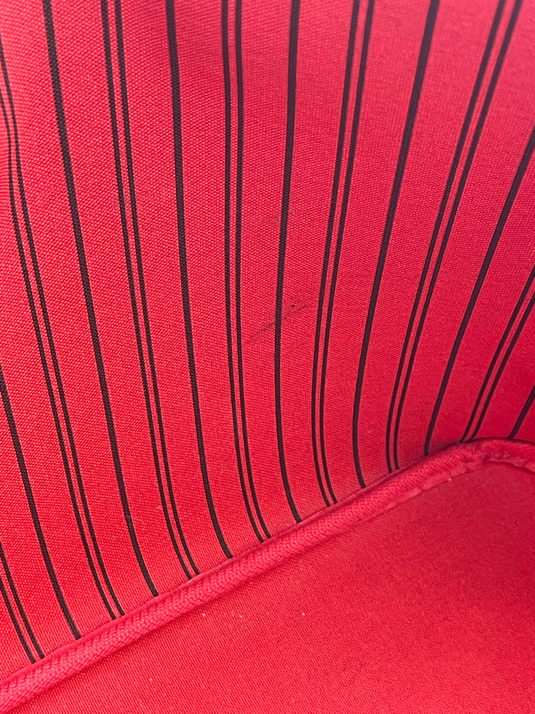 Good: Items show more prominent wear such as noticeable discoloration, stains and snags to fabric. May have worn corners and handles, tarnishing to hardware and creasing to leather. Pen or make up marks may be visible in the interior of the bag.