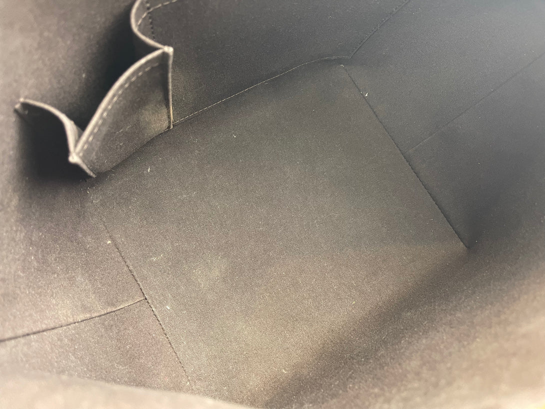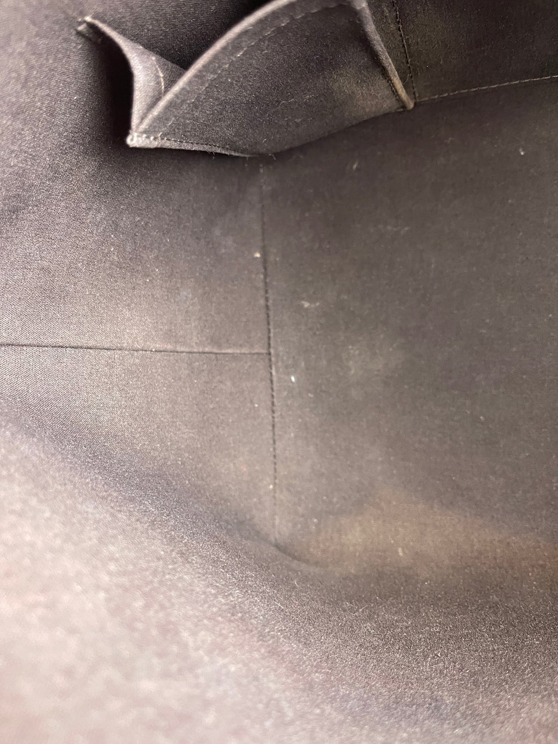 Good: Items show more prominent wear such as noticeable discoloration, stains and snags to fabric. May have worn corners and handles, tarnishing to hardware and creasing to leather. Pen or make up marks may be visible in the interior of the bag.