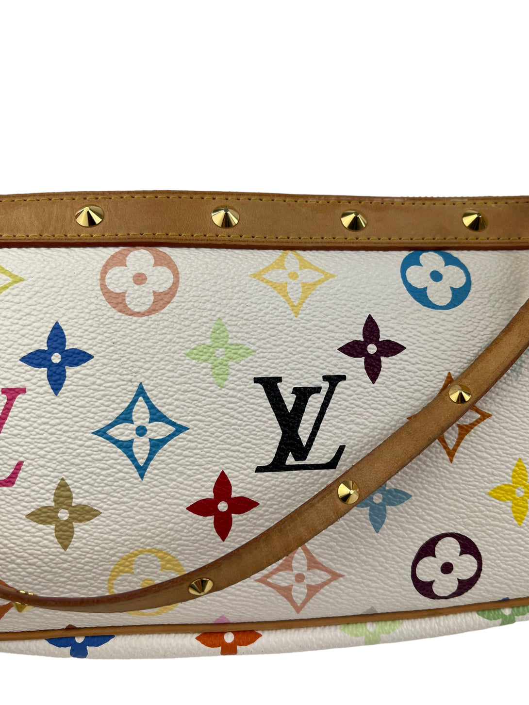 Louis Vuitton x Takashi Murakami White Multi Colour Monogram Pochette