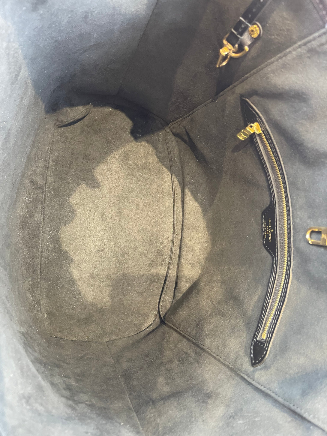 Good: Items show more prominent wear such as noticeable discoloration, stains and snags to fabric. May have worn corners and handles, tarnishing to hardware and creasing to leather. Pen or make up marks may be visible in the interior of the bag.