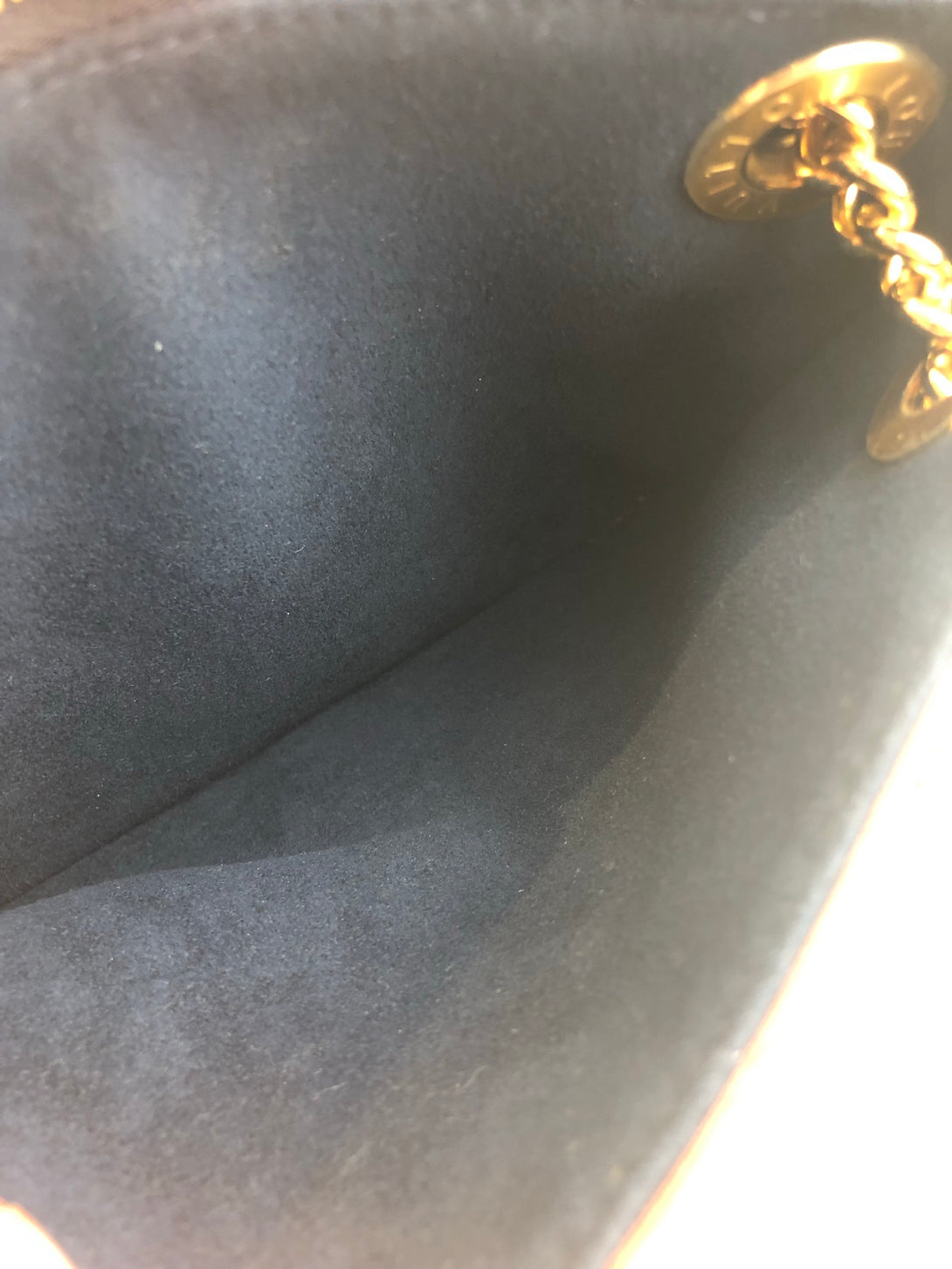 Good: Items show more prominent wear such as noticeable discoloration, stains and snags to fabric. May have worn corners and handles, tarnishing to hardware and creasing to leather. Pen or make up marks may be visible in the interior of the bag.