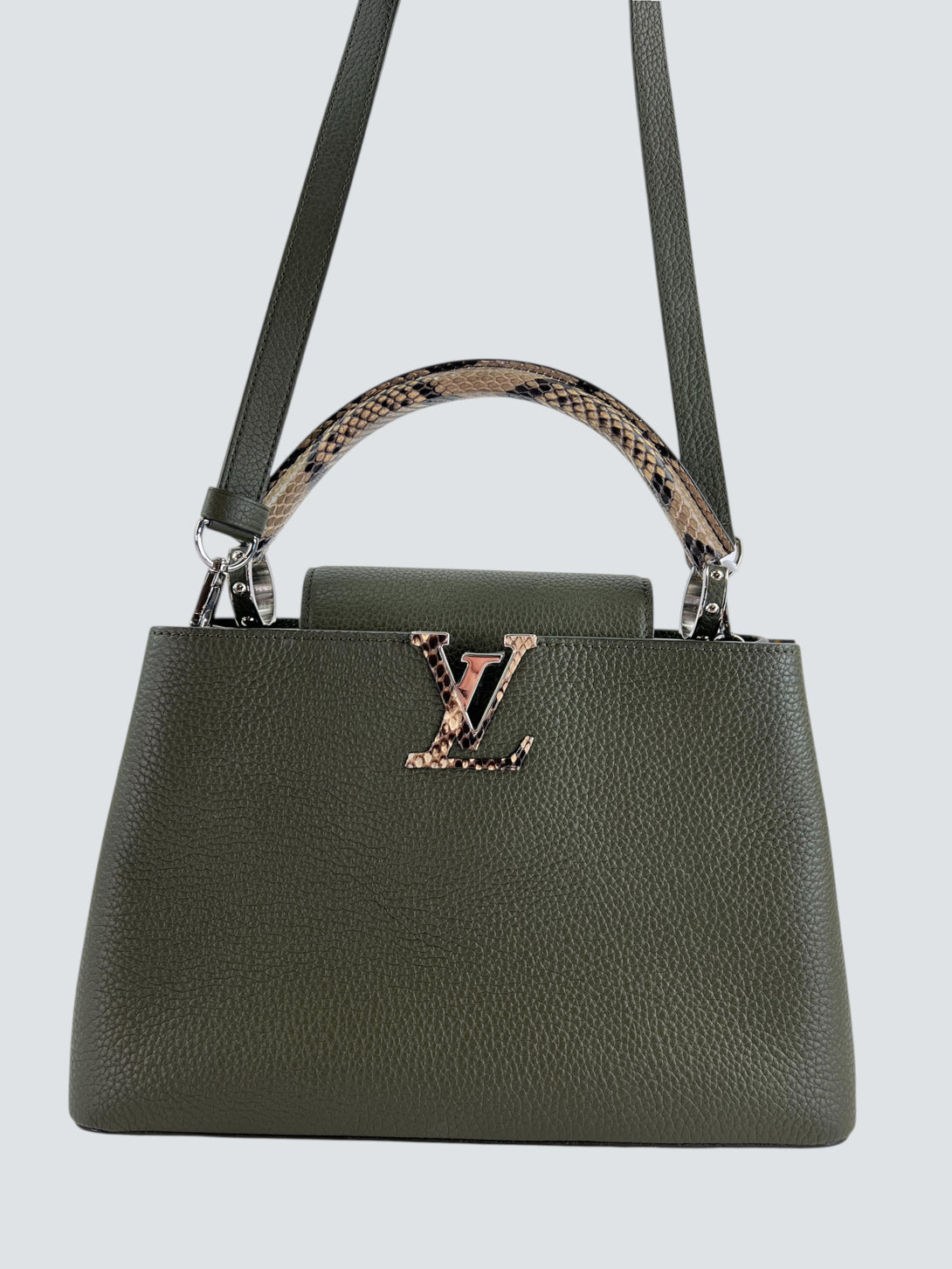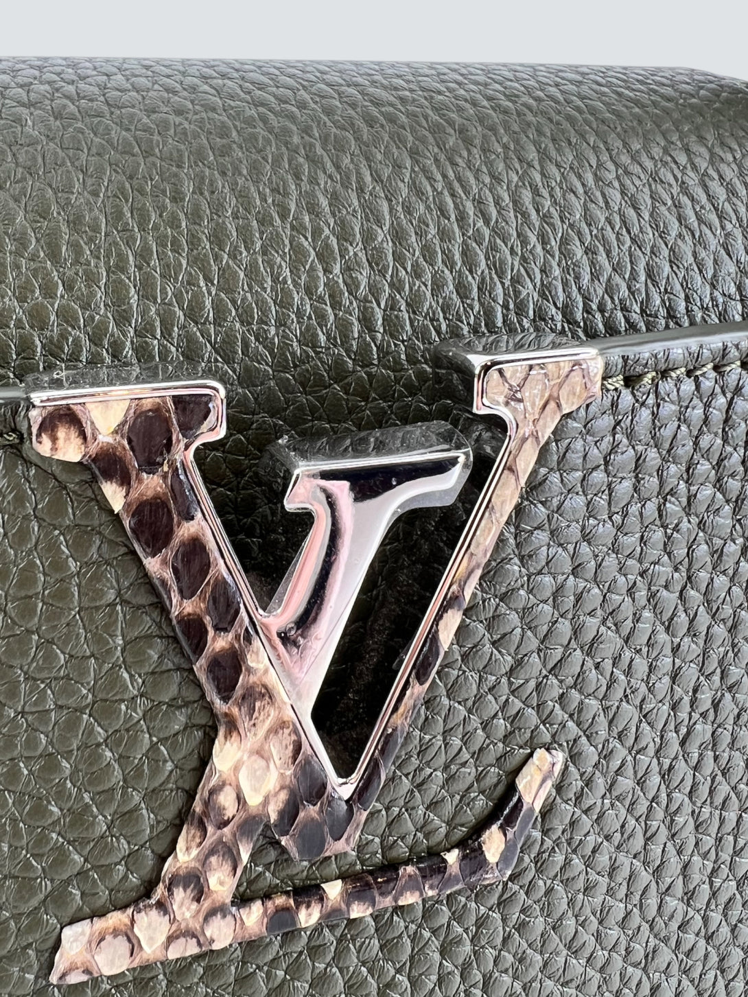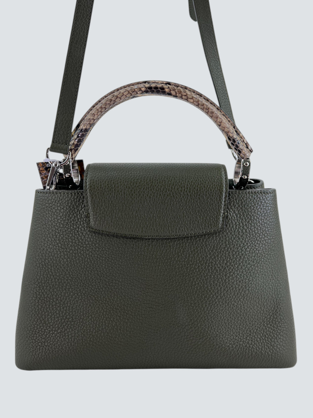 Louis Vuitton Olive Leather Capucines Tote - Snakeskin Handle