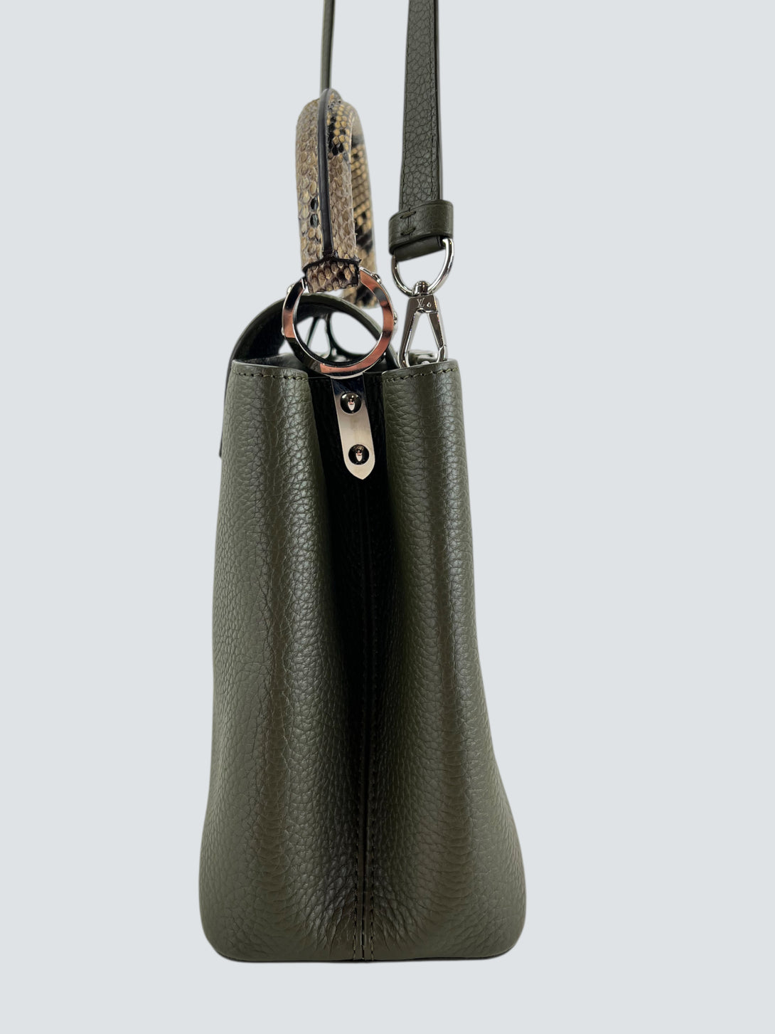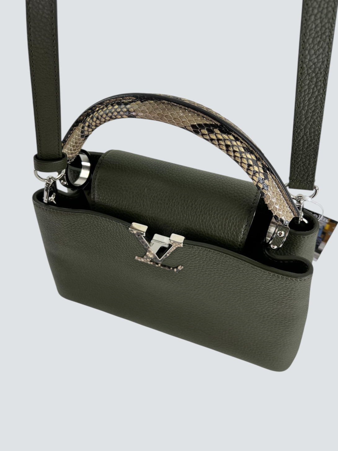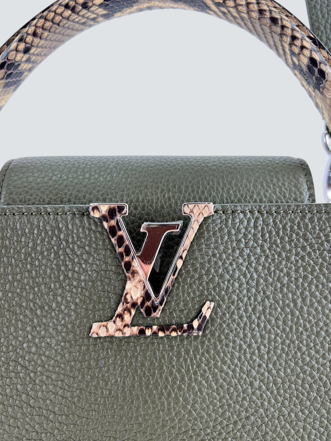 Louis Vuitton Olive Leather Capucines Tote - Snakeskin Handle