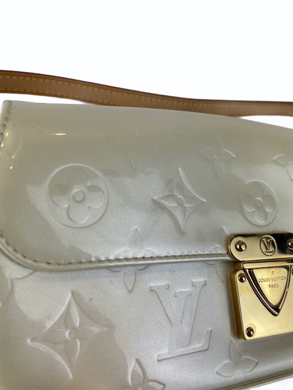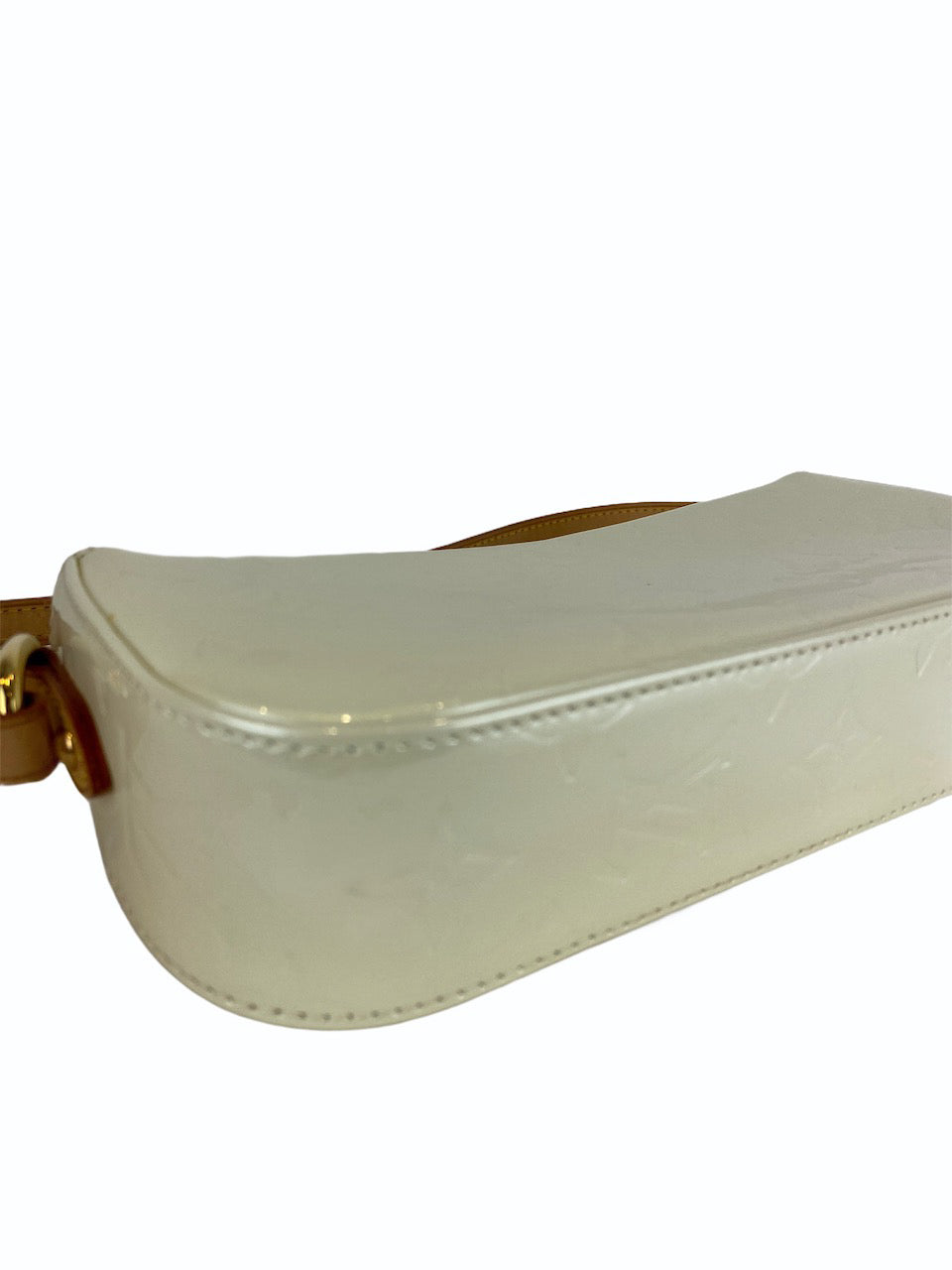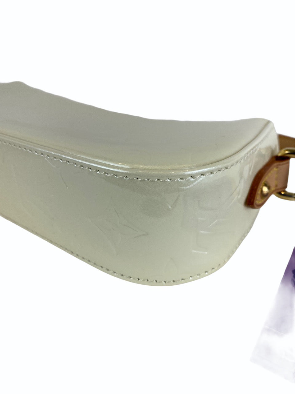 • Pearl, Vernis leather pochette with polished goldtone hardware