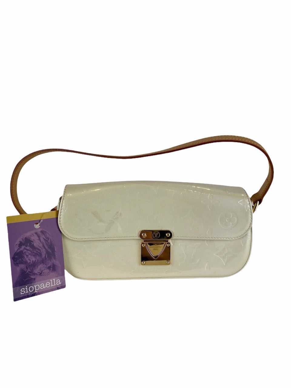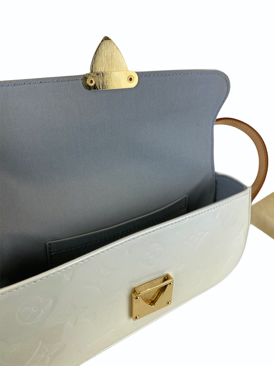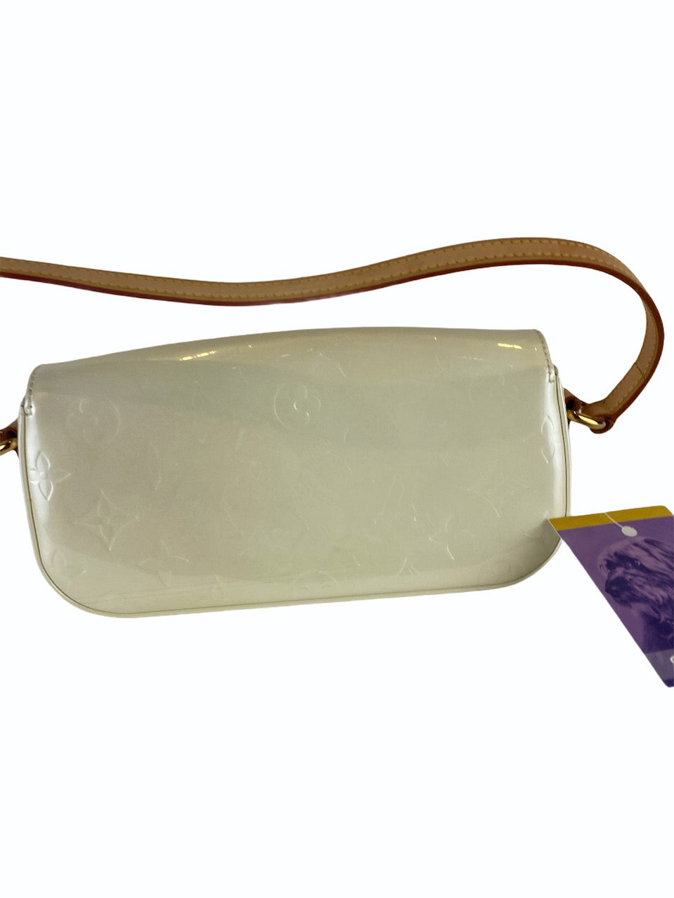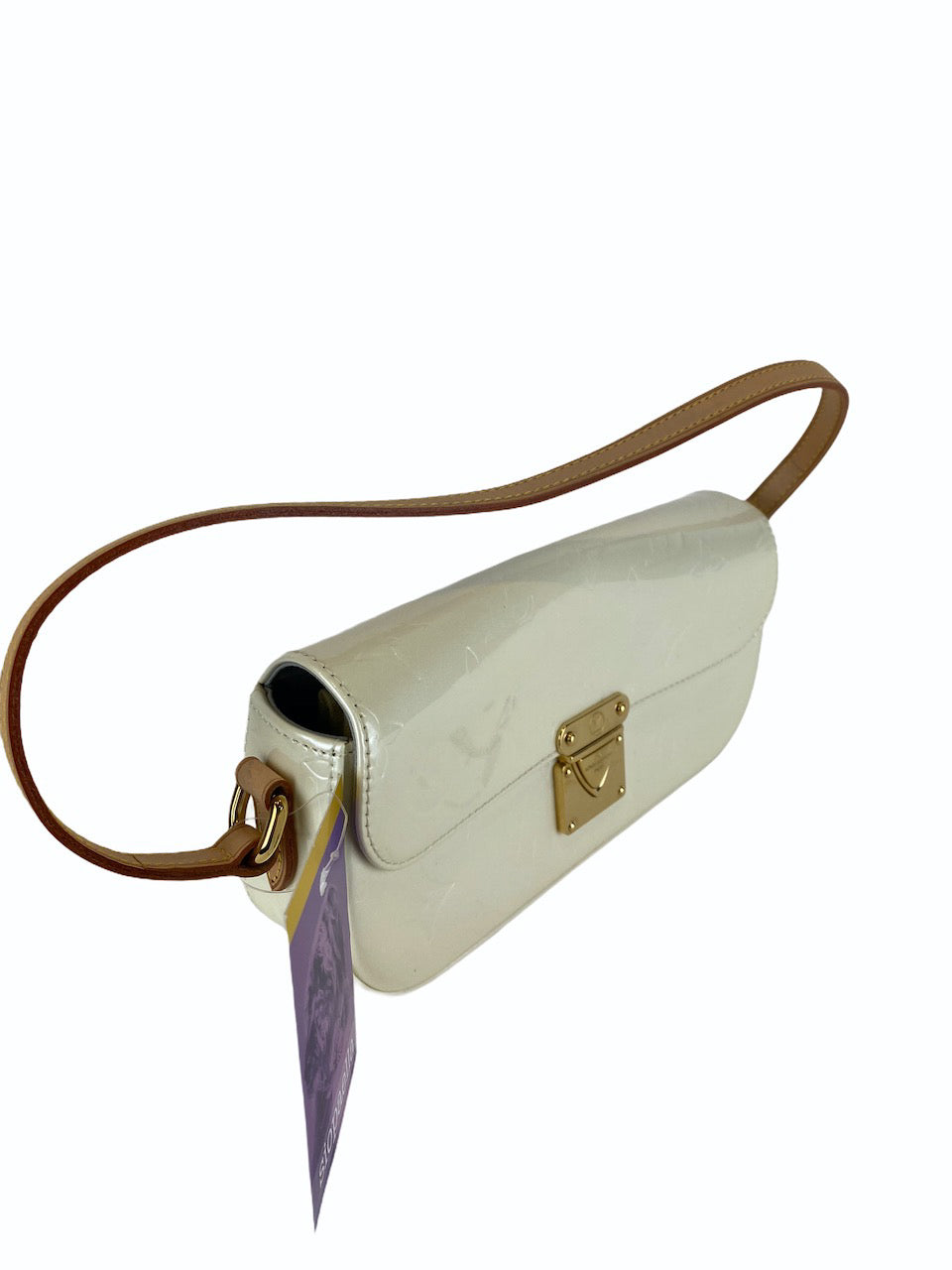 • Pearl, Vernis leather pochette with polished goldtone hardware