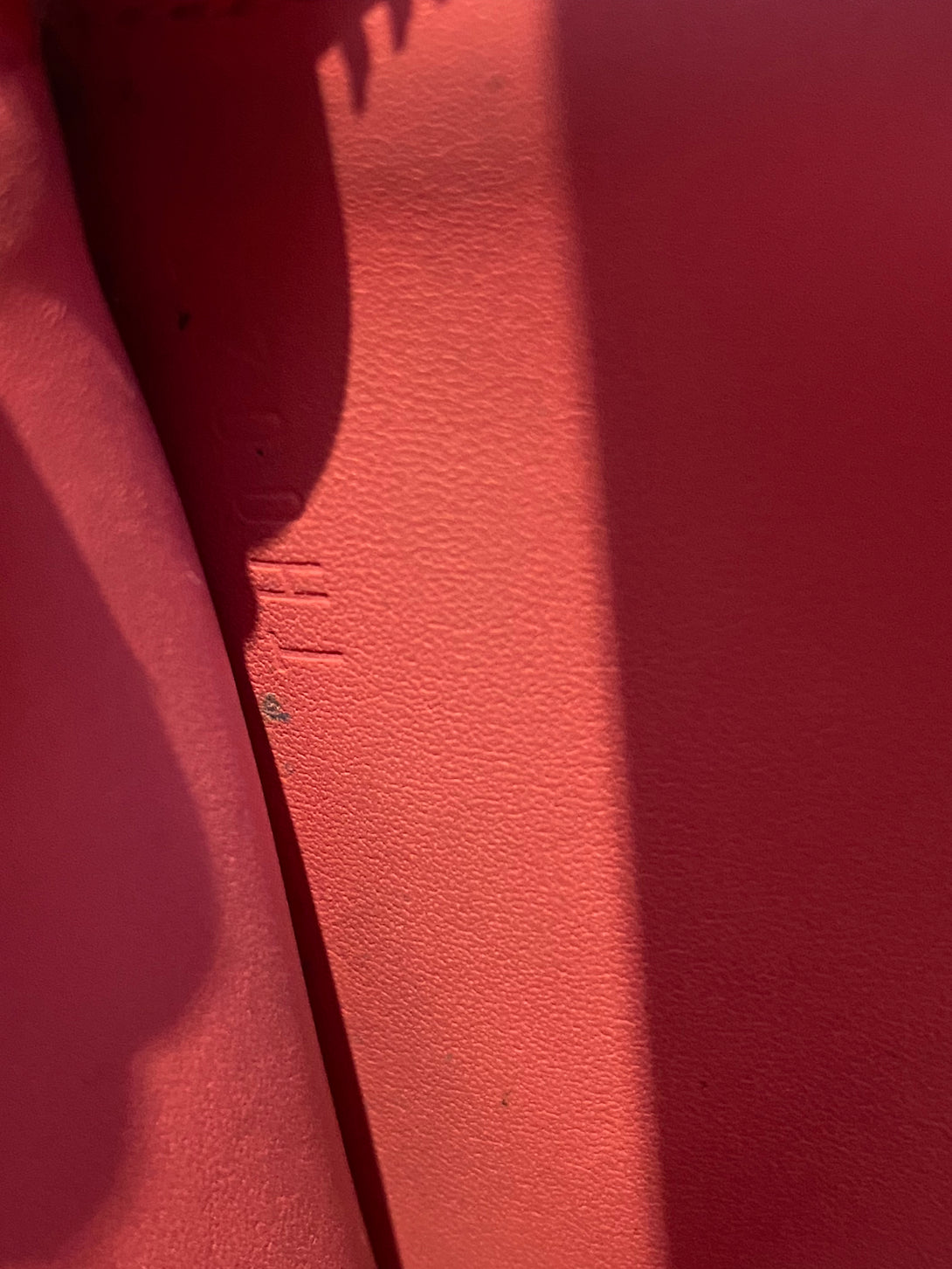 Fair: Very prominent wear, may have holes on corners, severe scuffs, piping of bag showing and pen marks to exterior. Interior may have pen or make up marks.