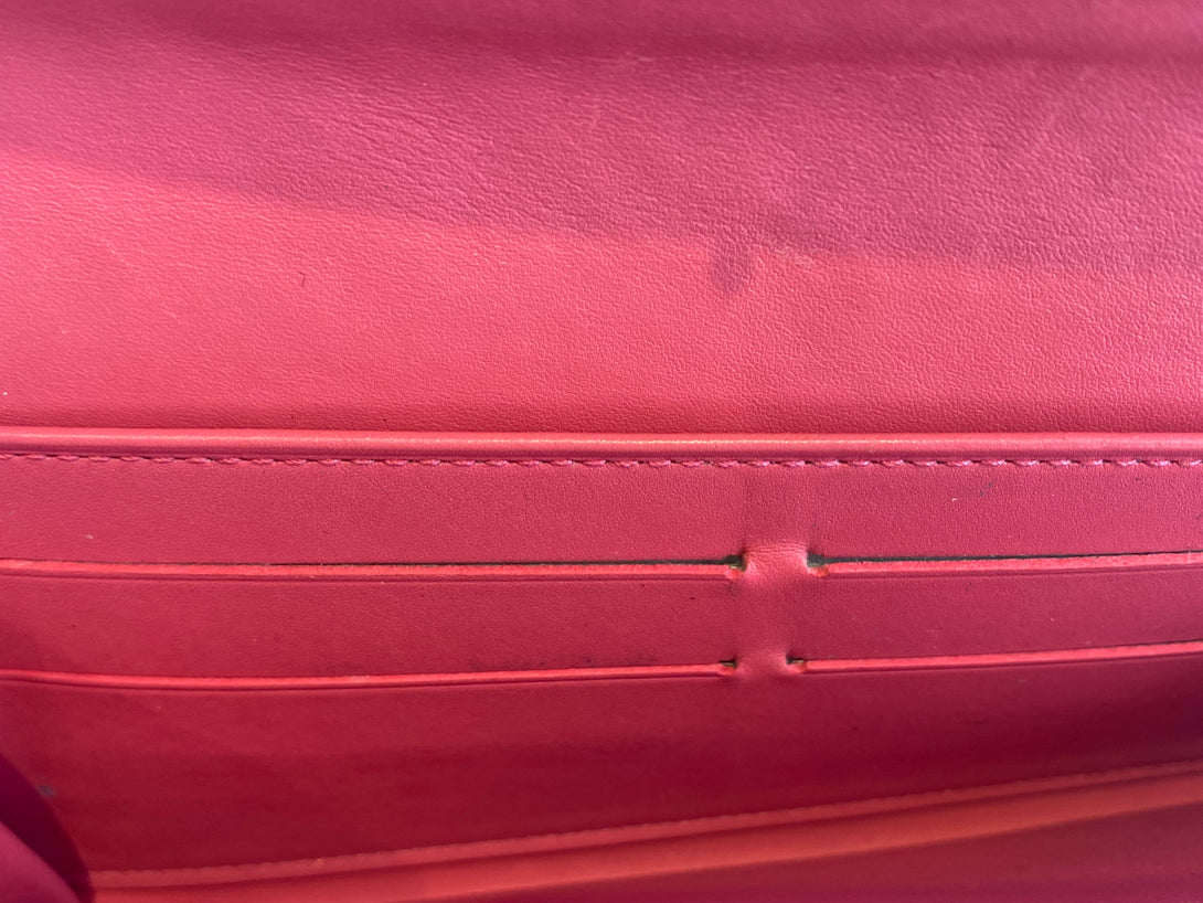Good: Items show more prominent wear such as noticeable discoloration, stains and snags to fabric. May have worn corners and handles, tarnishing to hardware and creasing to leather. Pen or make up marks may be visible in the interior of the bag.