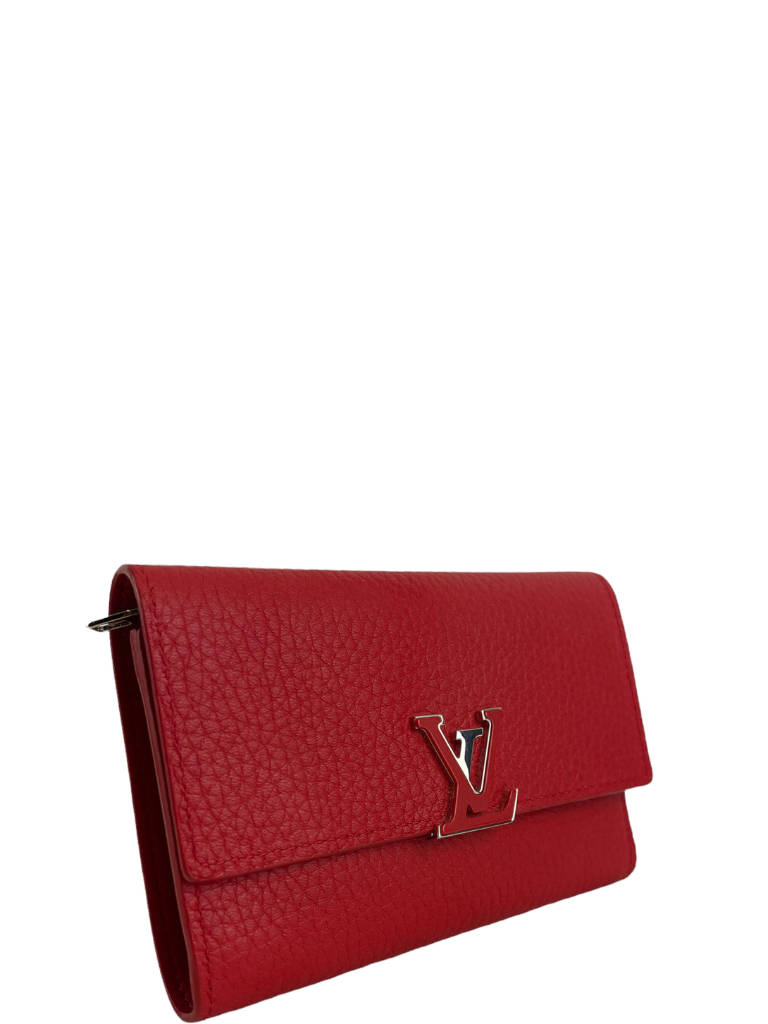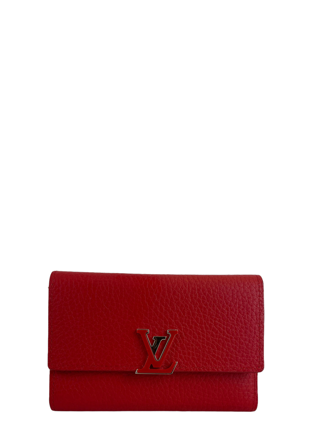 Louis Vuitton Red Calfskin Leather "Cappucine" Wallet