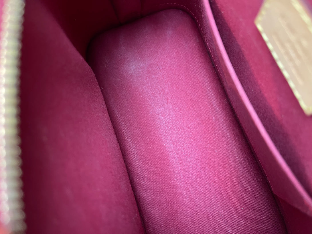 Good: Items show more prominent wear such as noticeable discoloration, stains and snags to fabric. May have worn corners and handles, tarnishing to hardware and creasing to leather. Pen or make up marks may be visible in the interior of the bag.