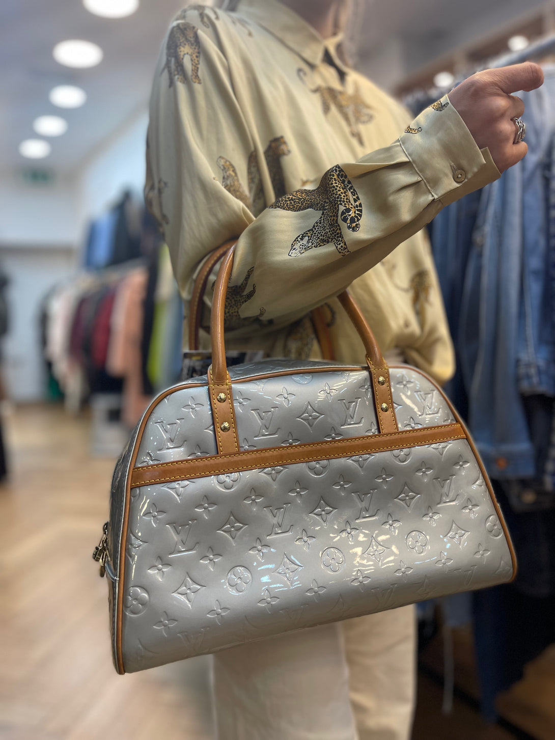 Louis Vuitton Silver / Champagne Vernis Leather Tomkins Tote
