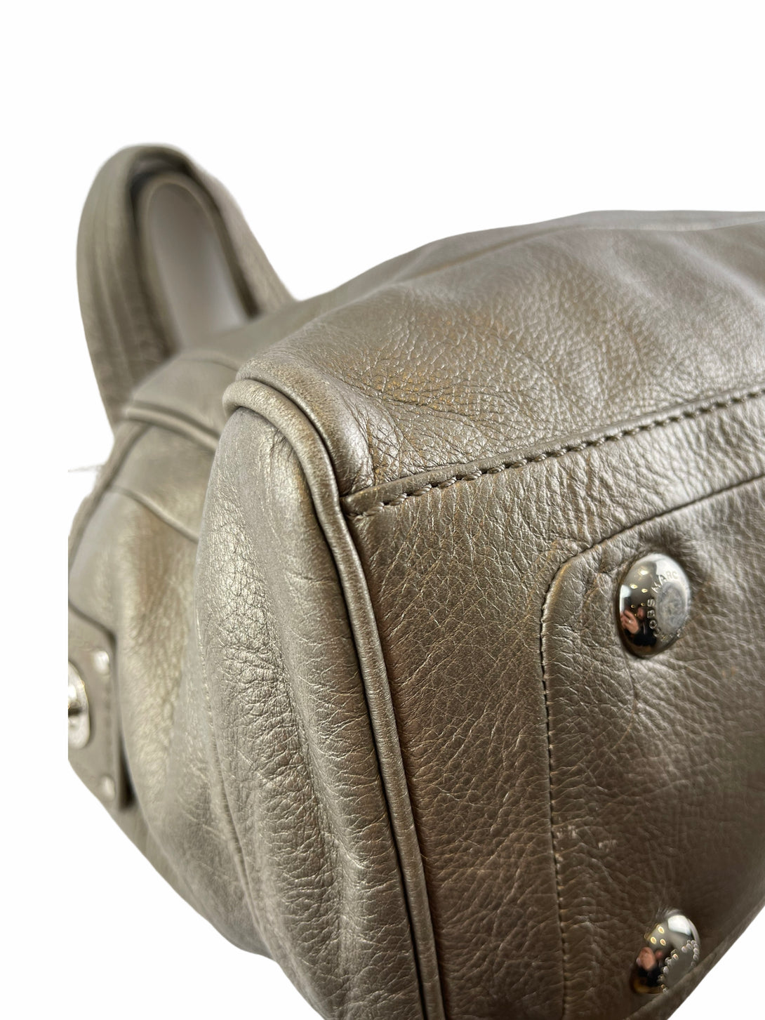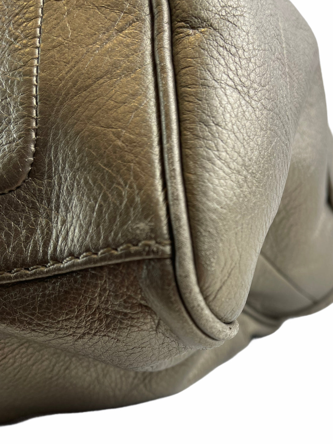 Good: Items show more prominent wear such as noticeable discoloration, stains and snags to fabric. May have worn corners and handles, tarnishing to hardware and creasing to leather. Pen or make up marks may be visible in the interior of the bag.