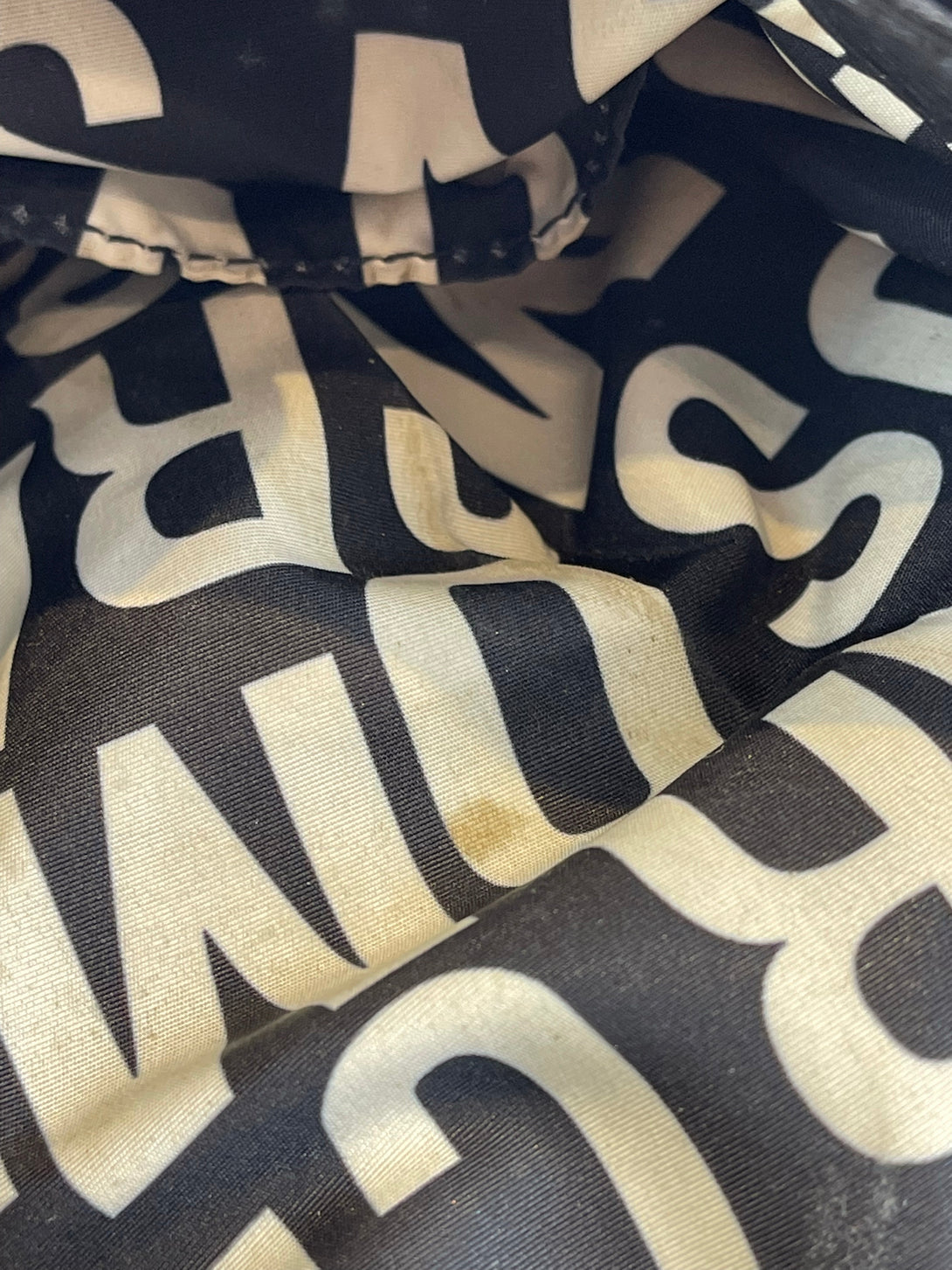Good: Items show more prominent wear such as noticeable discoloration, stains and snags to fabric. May have worn corners and handles, tarnishing to hardware and creasing to leather. Pen or make up marks may be visible in the interior of the bag.