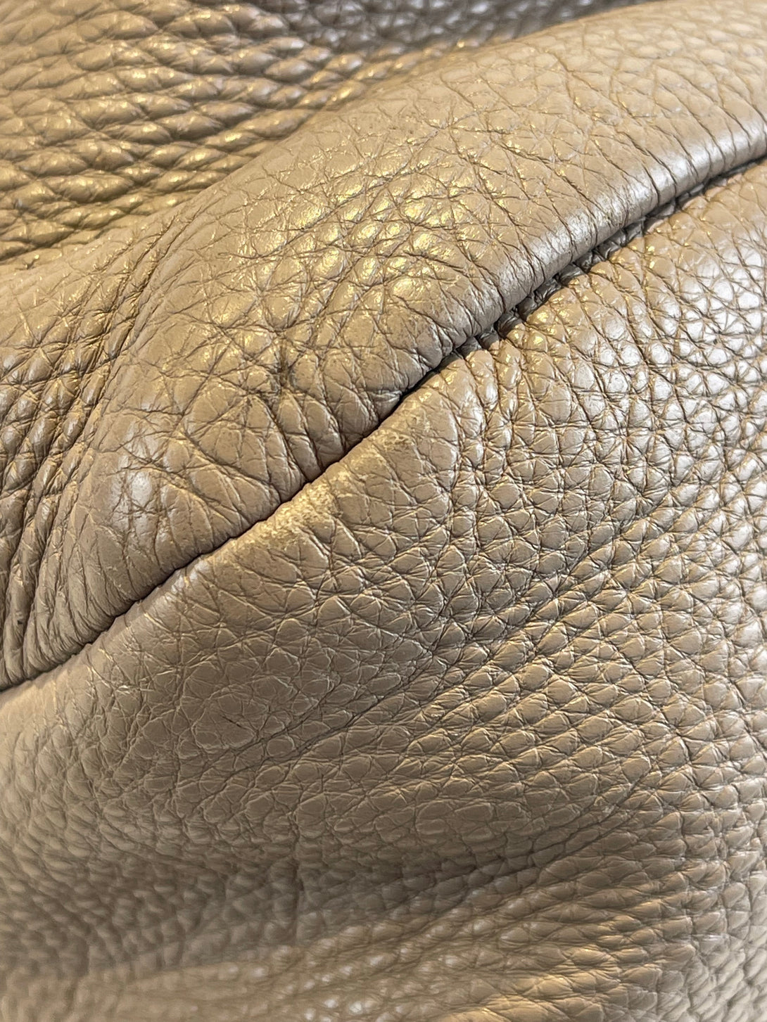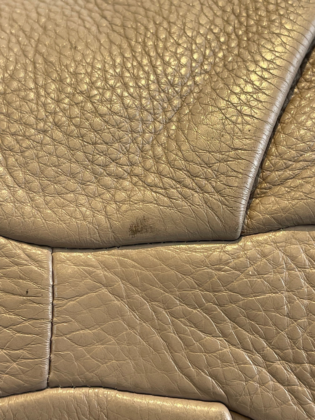 Good: Items show more prominent wear such as noticeable discoloration, stains and snags to fabric. May have worn corners and handles, tarnishing to hardware and creasing to leather. Pen or make up marks may be visible in the interior of the bag.
