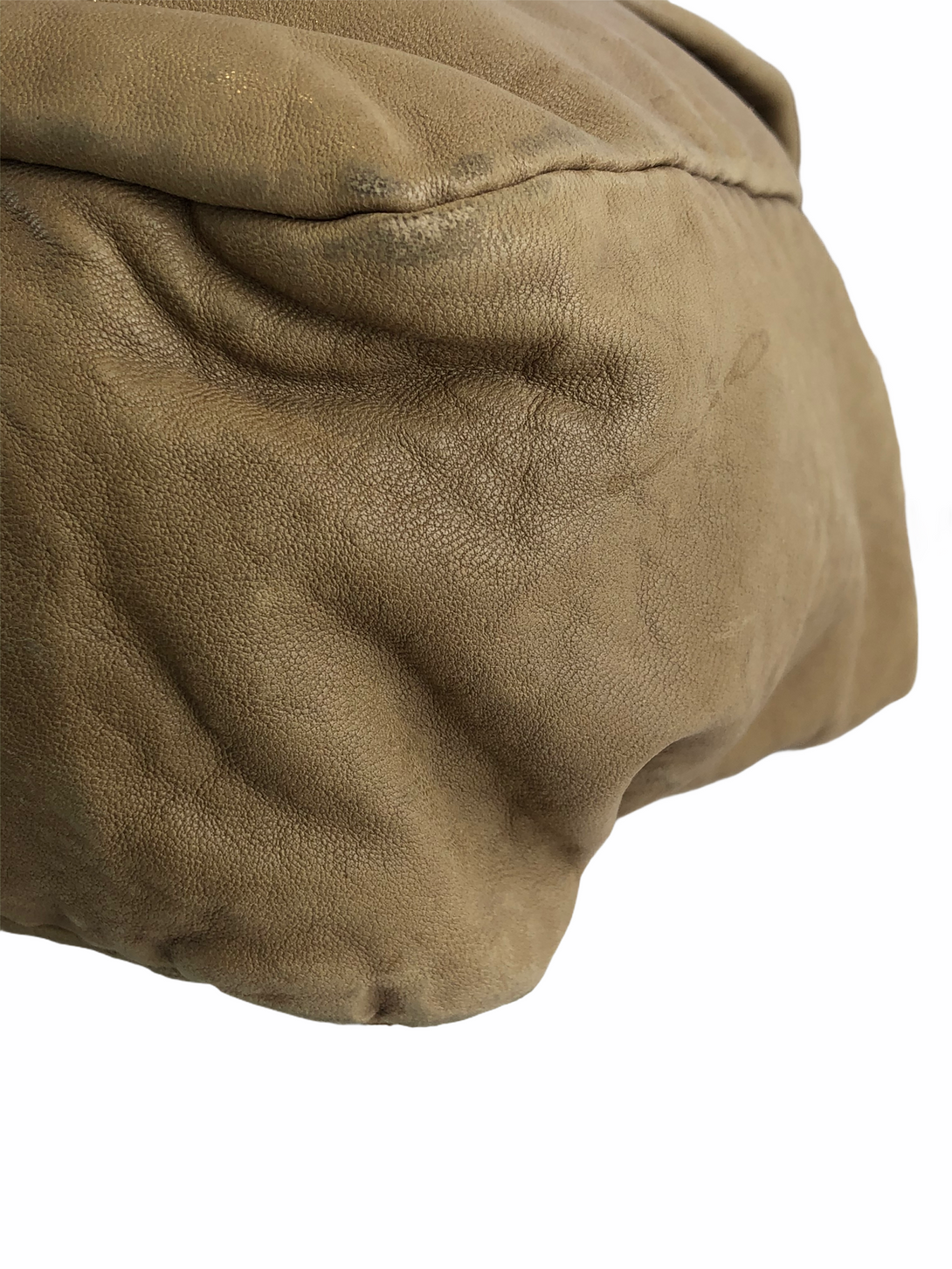 Good: Items show more prominent wear such as noticeable discoloration, stains and snags to fabric. May have worn corners and handles, tarnishing to hardware and creasing to leather. Pen or make up marks may be visible in the interior of the bag.