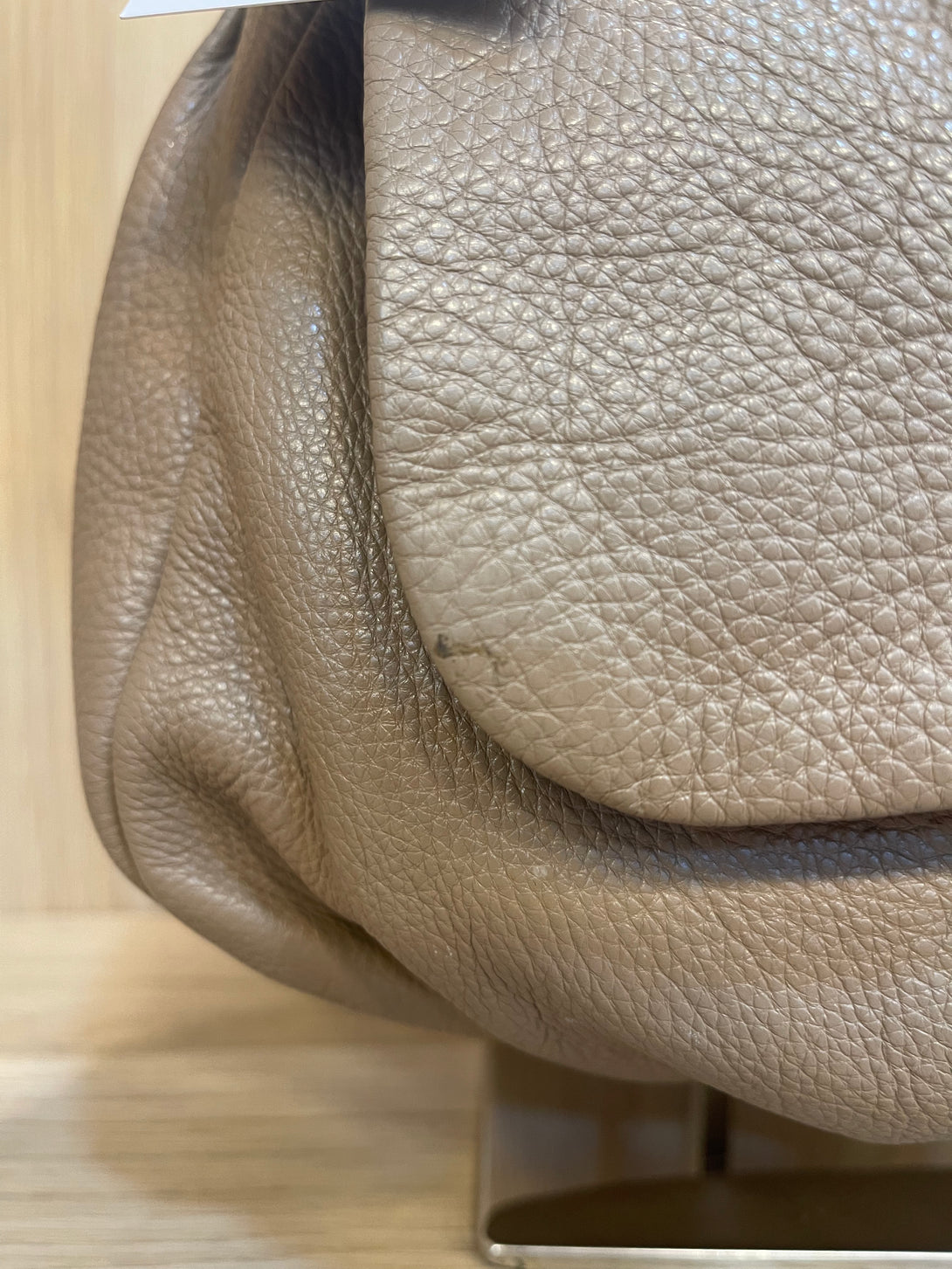 Good: Items show more prominent wear such as noticeable discoloration, stains and snags to fabric. May have worn corners and handles, tarnishing to hardware and creasing to leather. Pen or make up marks may be visible in the interior of the bag.