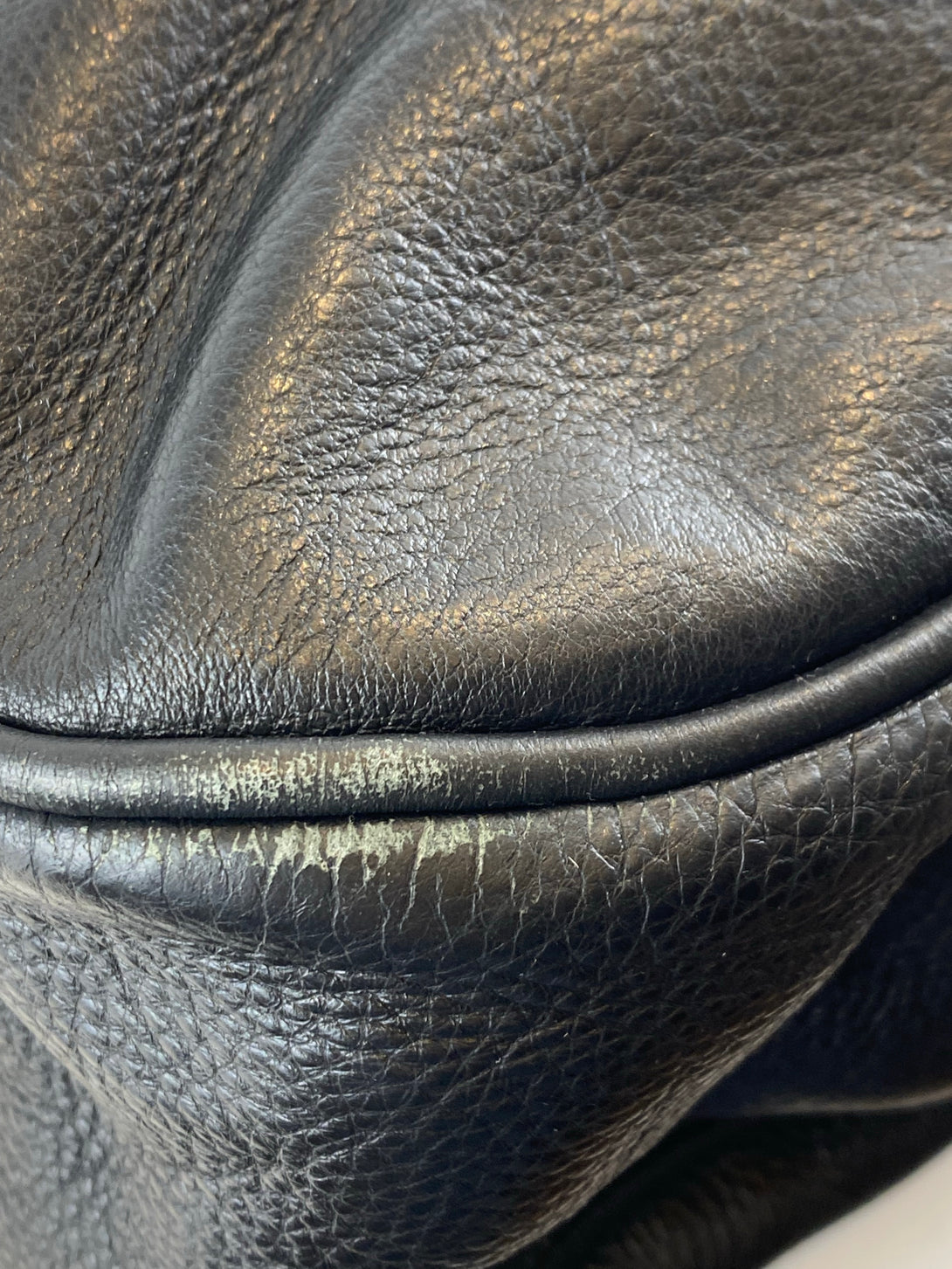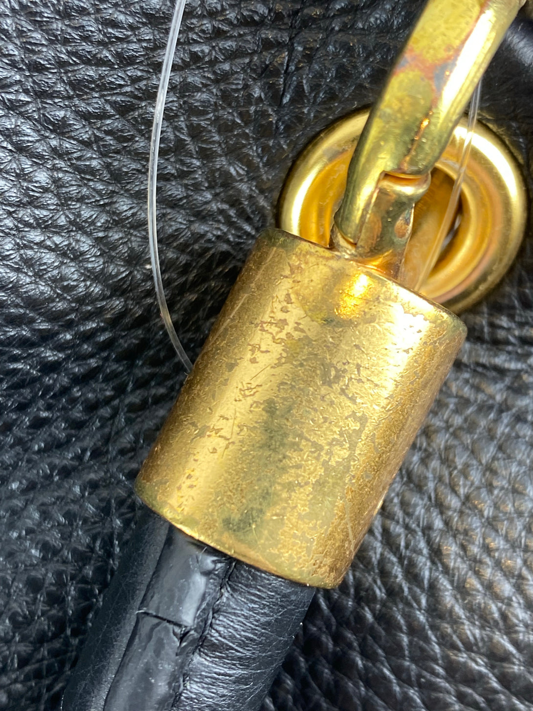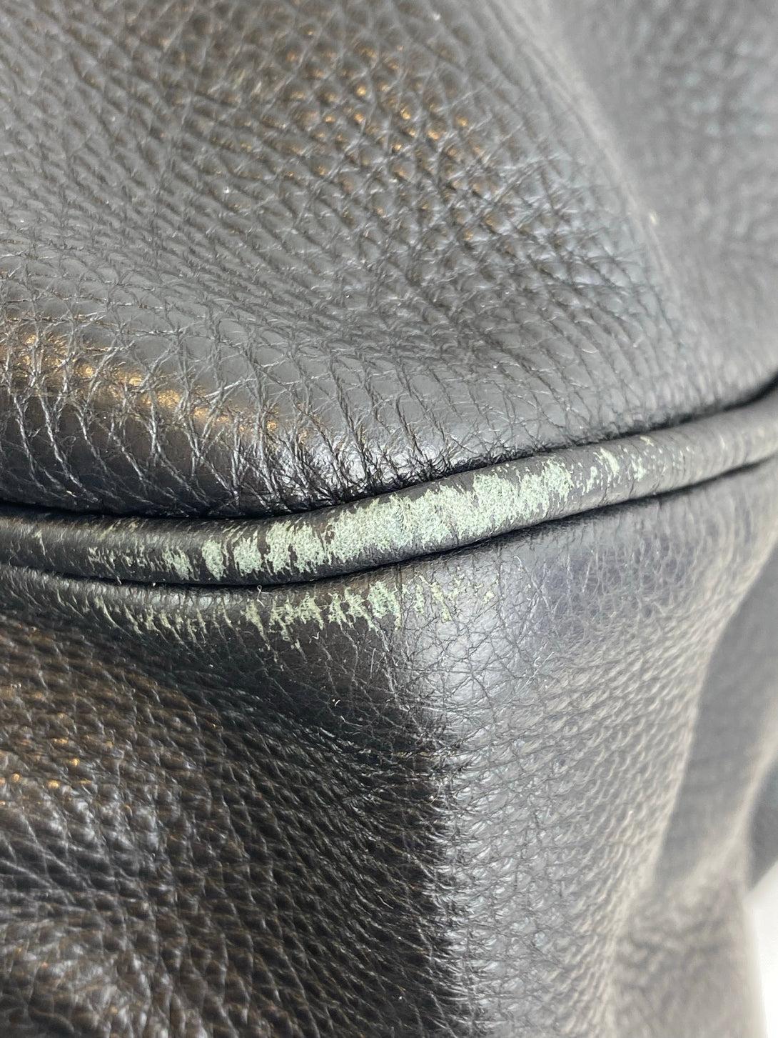 Good: Items show more prominent wear such as noticeable discoloration, stains and snags to fabric. May have worn corners and handles, tarnishing to hardware and creasing to leather. Pen or make up marks may be visible in the interior of the bag.