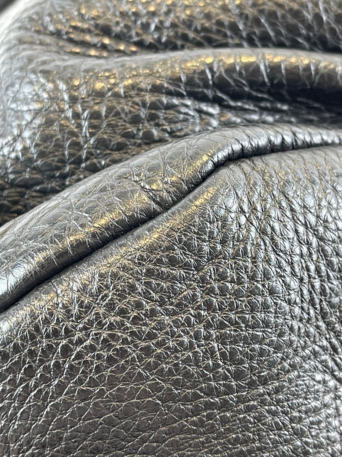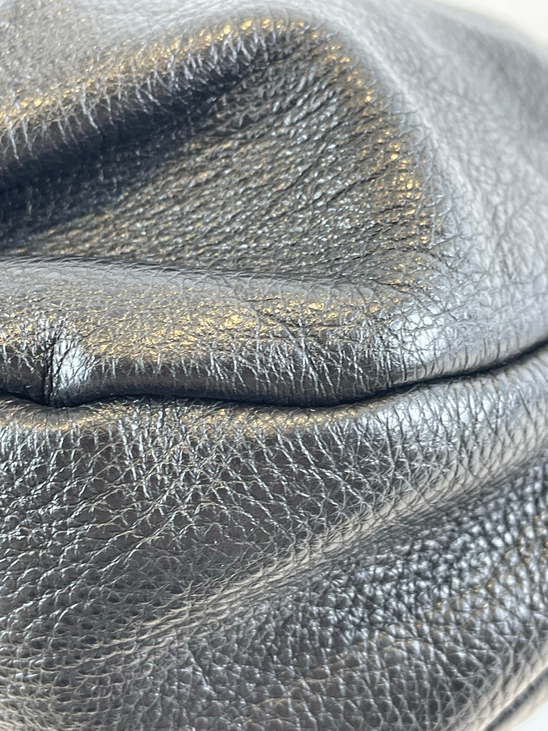 Good: Items show more prominent wear such as noticeable discoloration, stains and snags to fabric. May have worn corners and handles, tarnishing to hardware and creasing to leather. Pen or make up marks may be visible in the interior of the bag.