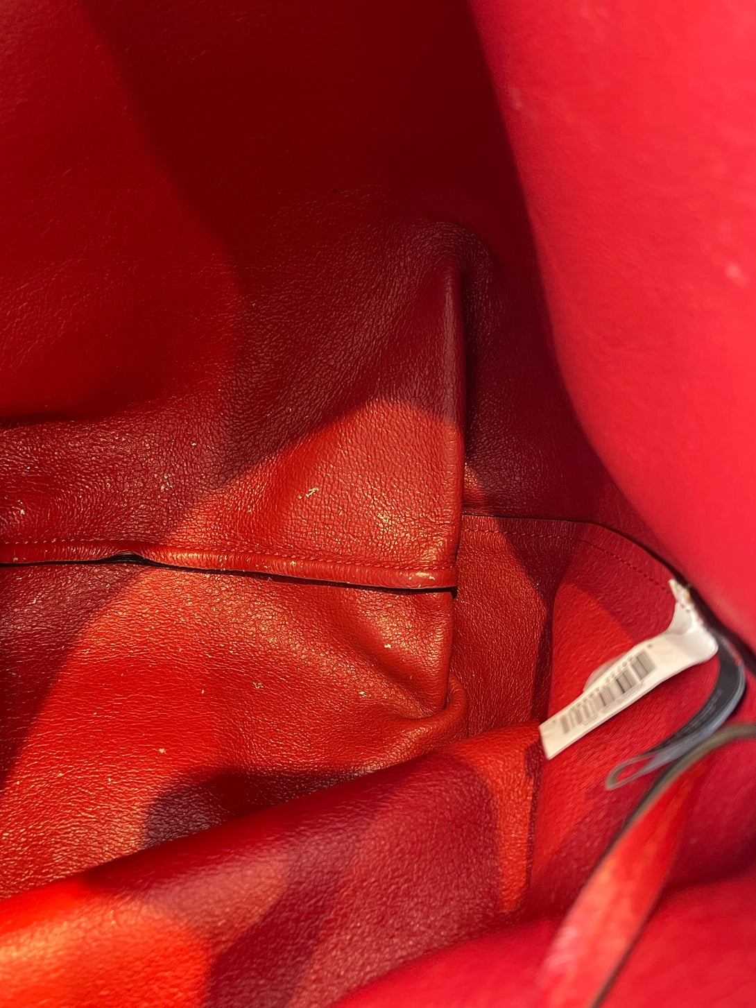 Good: Items show more prominent wear such as noticeable discoloration, stains and snags to fabric. May have worn corners and handles, tarnishing to hardware and creasing to leather. Pen or make up marks may be visible in the interior of the bag.