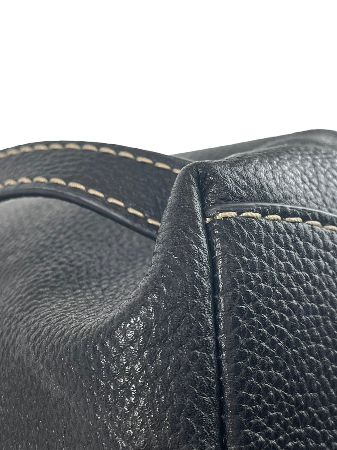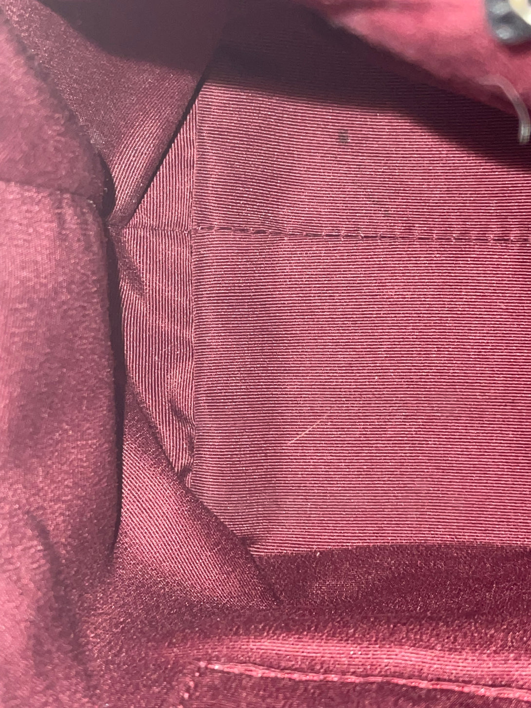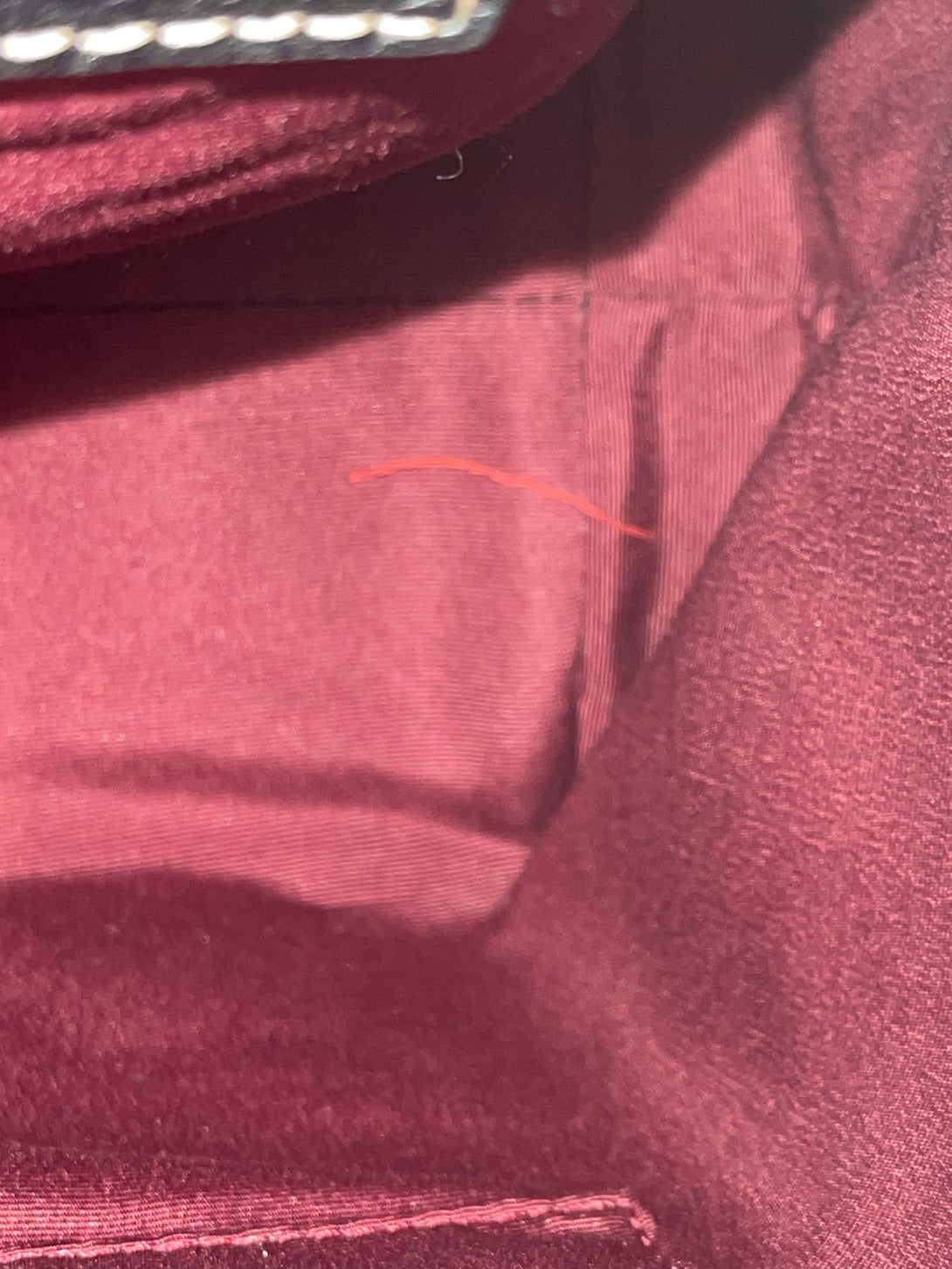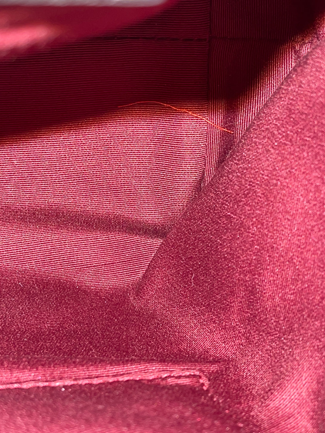 Good: Items show more prominent wear such as noticeable discoloration, stains and snags to fabric. May have worn corners and handles, tarnishing to hardware and creasing to leather. Pen or make up marks may be visible in the interior of the bag.