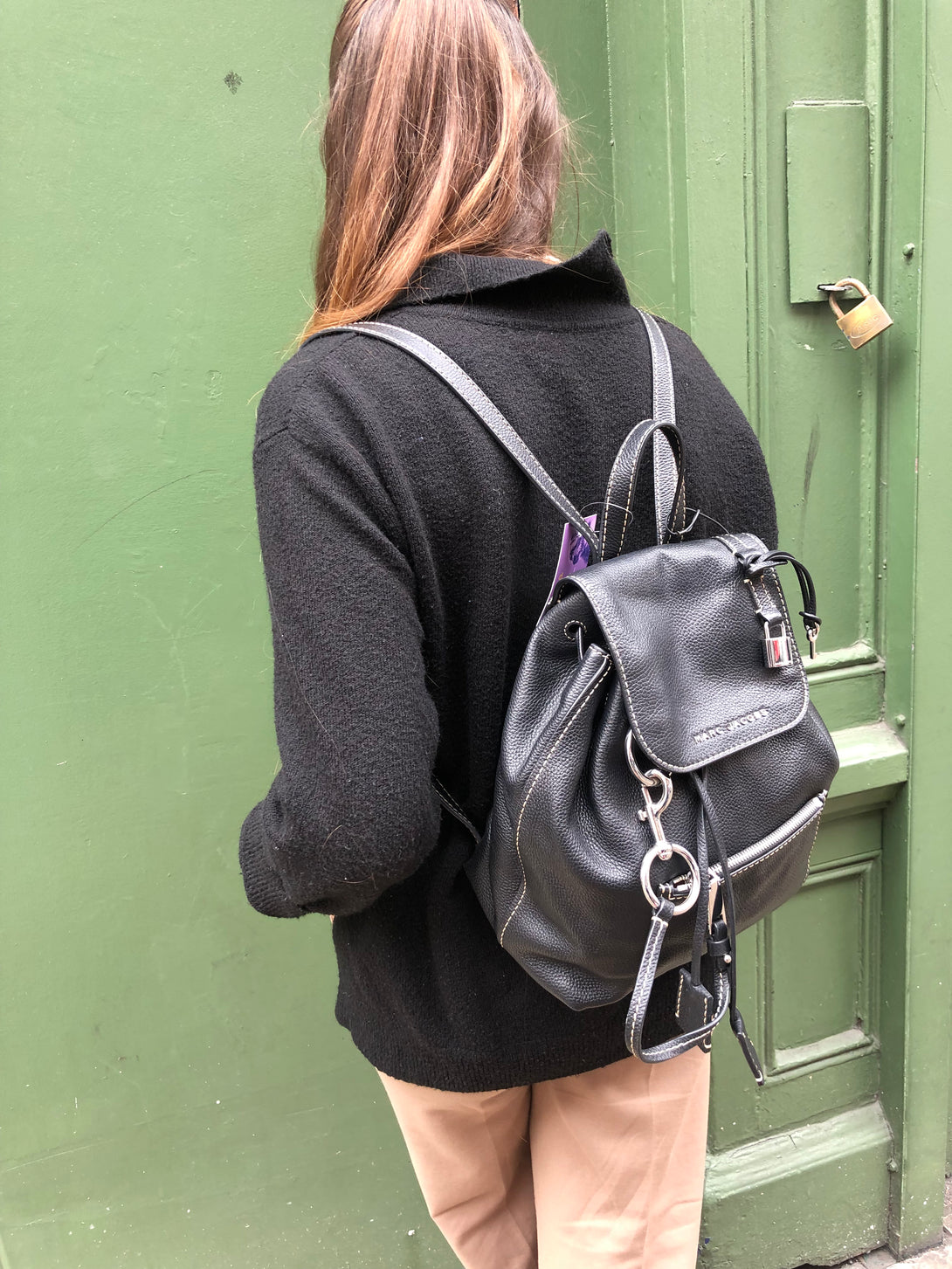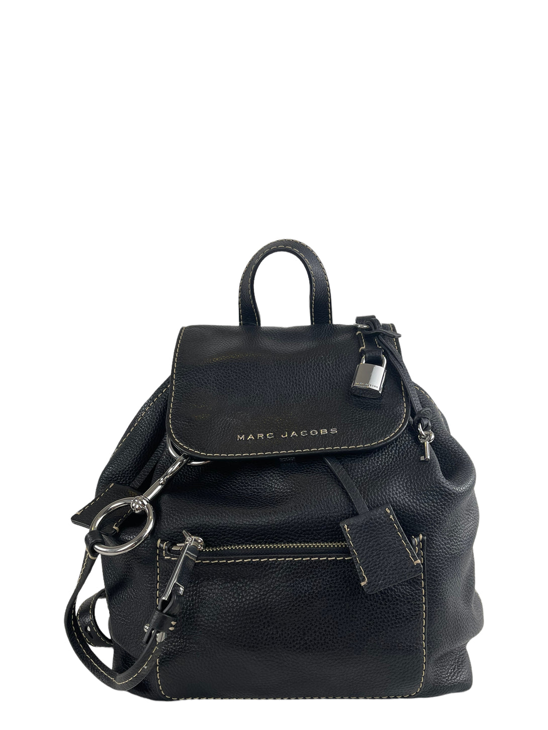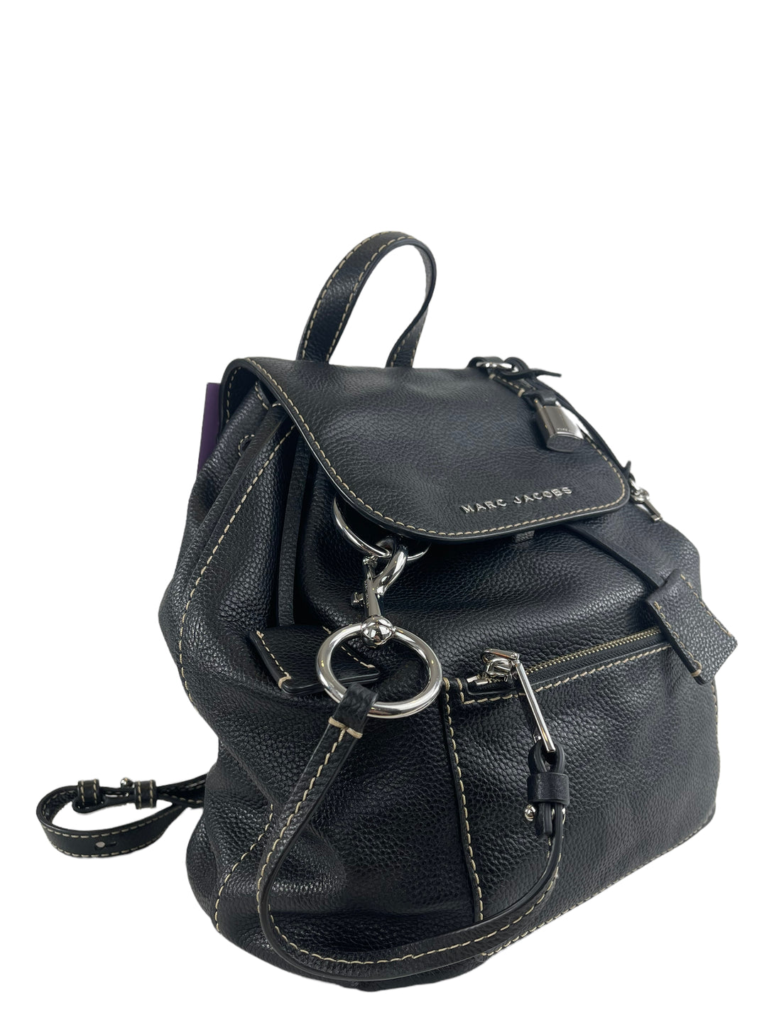 Marc Jacobs Black Textured Leather Backpack with Contrast Stitching