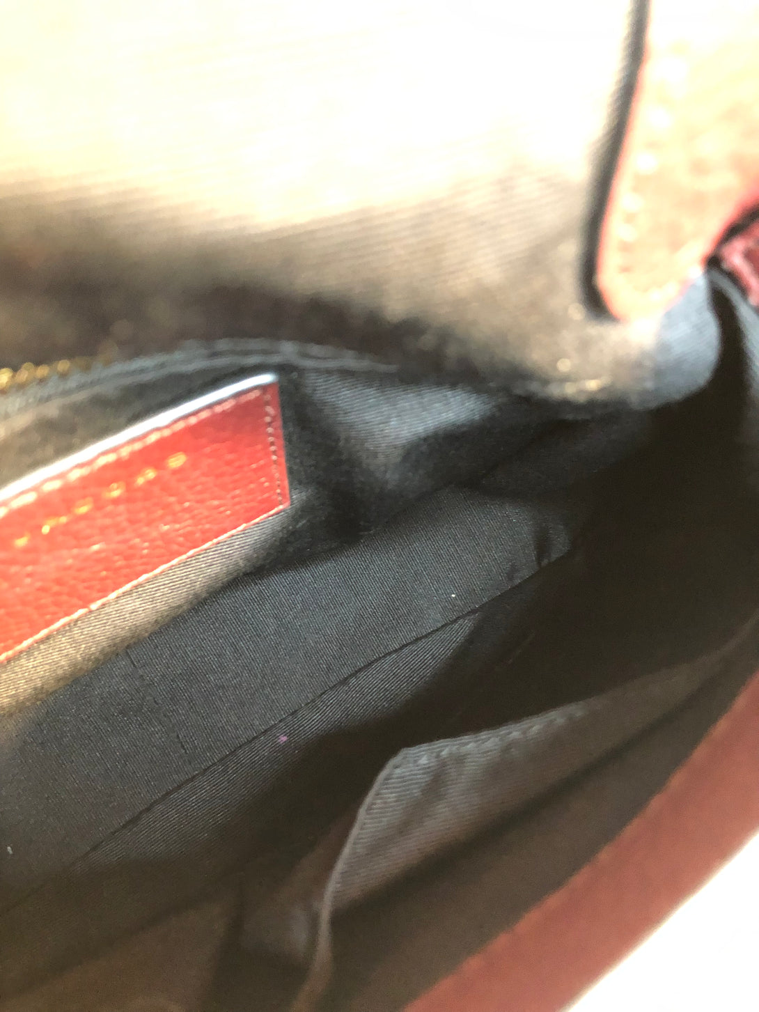 Good: Items show more prominent wear such as noticeable discoloration, stains and snags to fabric. May have worn corners and handles, tarnishing to hardware and creasing to leather. Pen or make up marks may be visible in the interior of the bag.