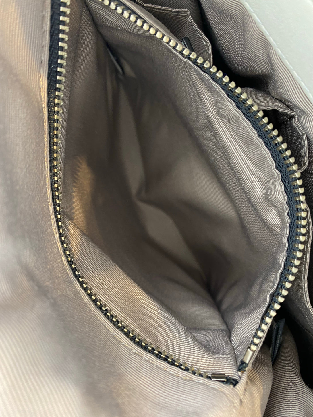 Good: Items show more prominent wear such as noticeable discoloration, stains and snags to fabric. May have worn corners and handles, tarnishing to hardware and creasing to leather. Pen or make up marks may be visible in the interior of the bag.