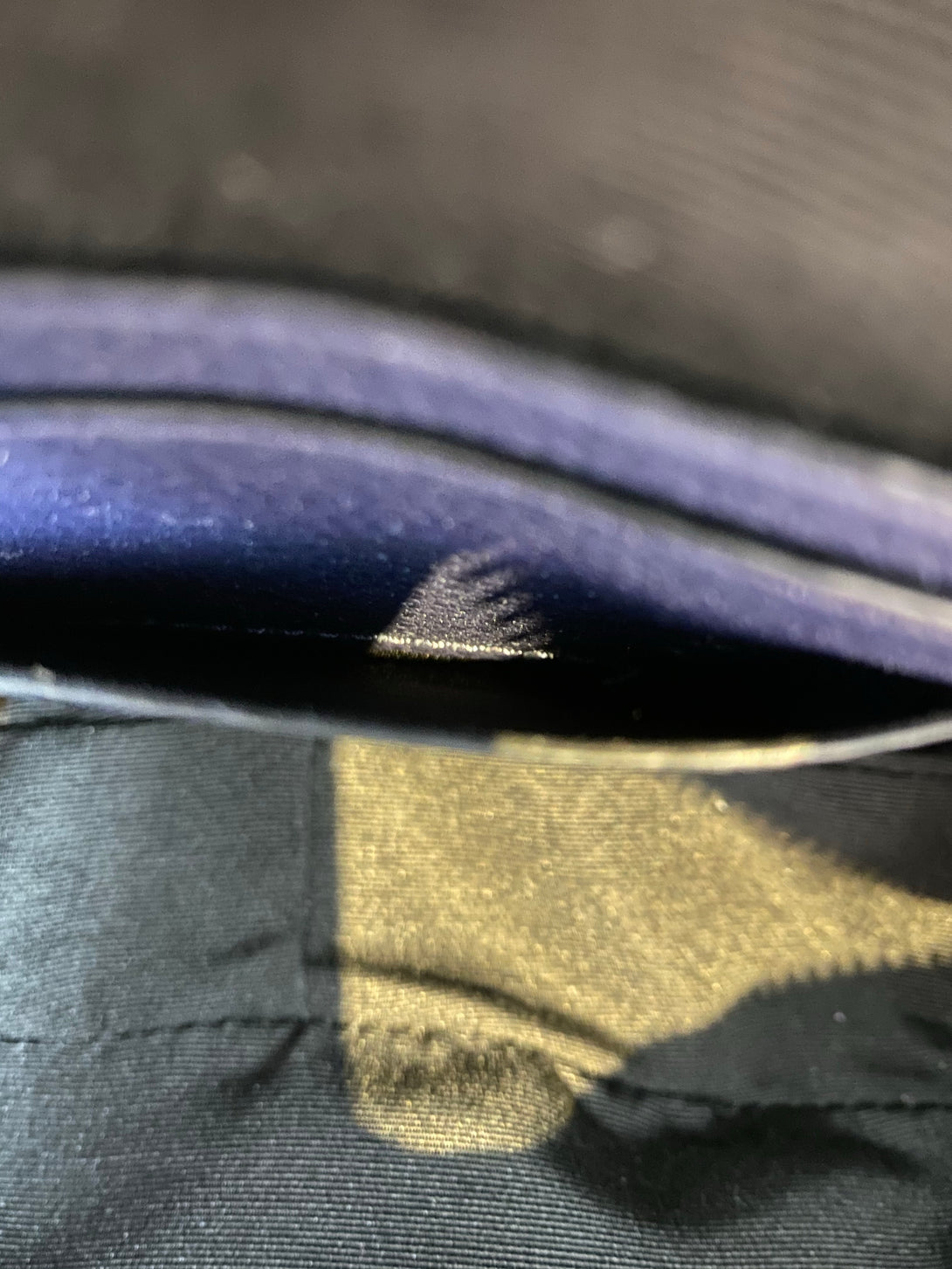 Fair: Very prominent wear, may have holes on corners, severe scuffs, piping of bag showing and pen marks to exterior. Interior may have pen or make up marks.