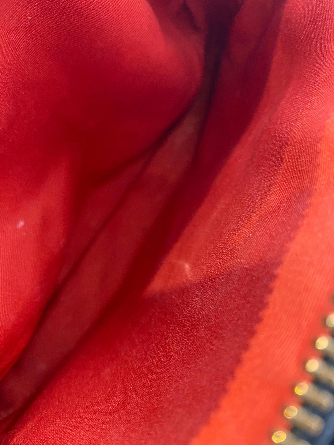 Good: Items show more prominent wear such as noticeable discoloration, stains and snags to fabric. May have worn corners and handles, tarnishing to hardware and creasing to leather. Pen or make up marks may be visible in the interior of the bag.