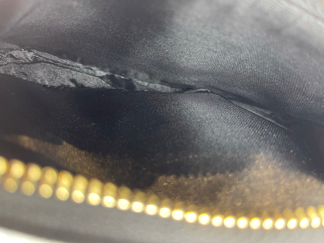 Good: Items show more prominent wear such as noticeable discoloration, stains and snags to fabric. May have worn corners and handles, tarnishing to hardware and creasing to leather. Pen or make up marks may be visible in the interior of the bag.