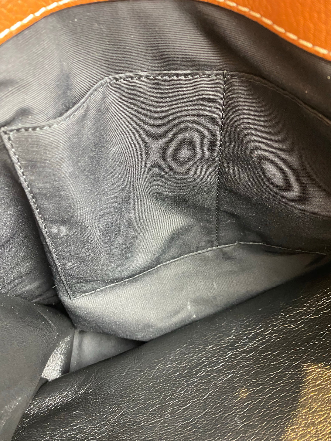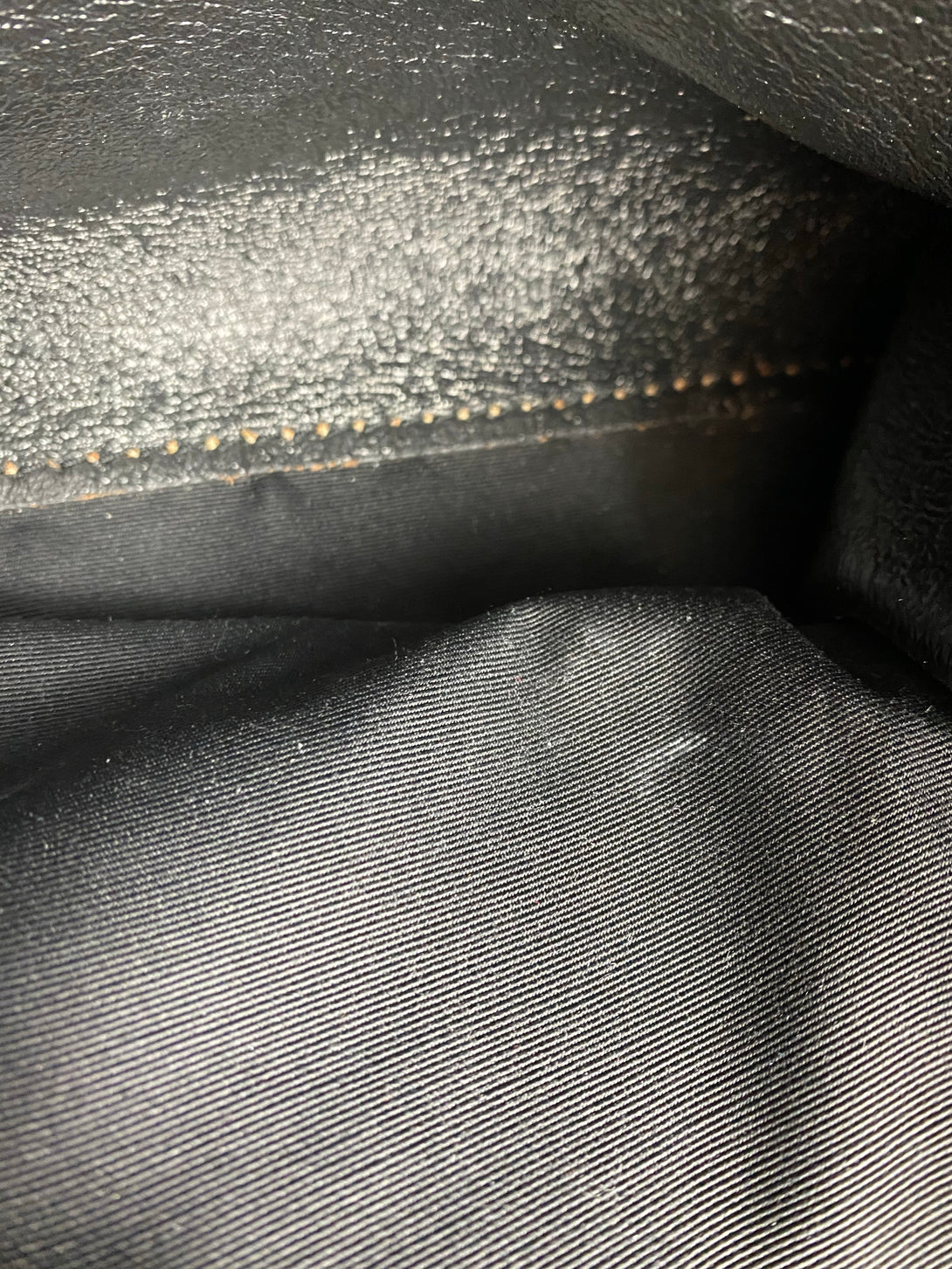 Good: Items show more prominent wear such as noticeable discoloration, stains and snags to fabric. May have worn corners and handles, tarnishing to hardware and creasing to leather. Pen or make up marks may be visible in the interior of the bag.