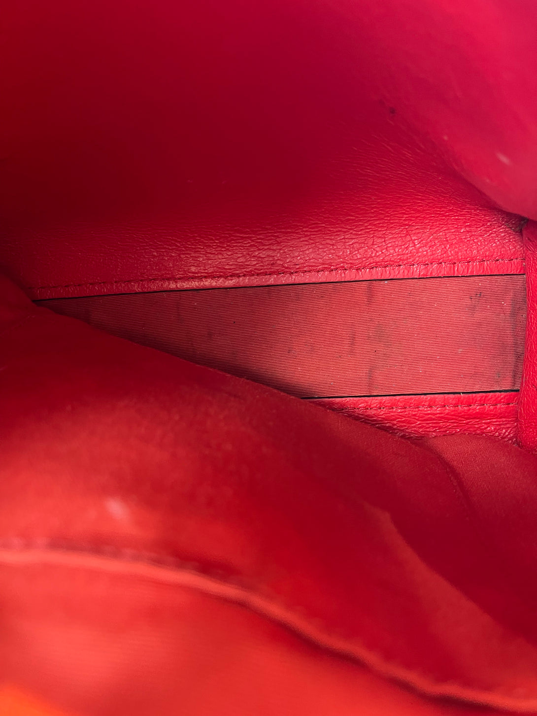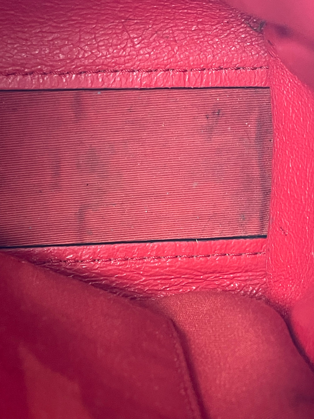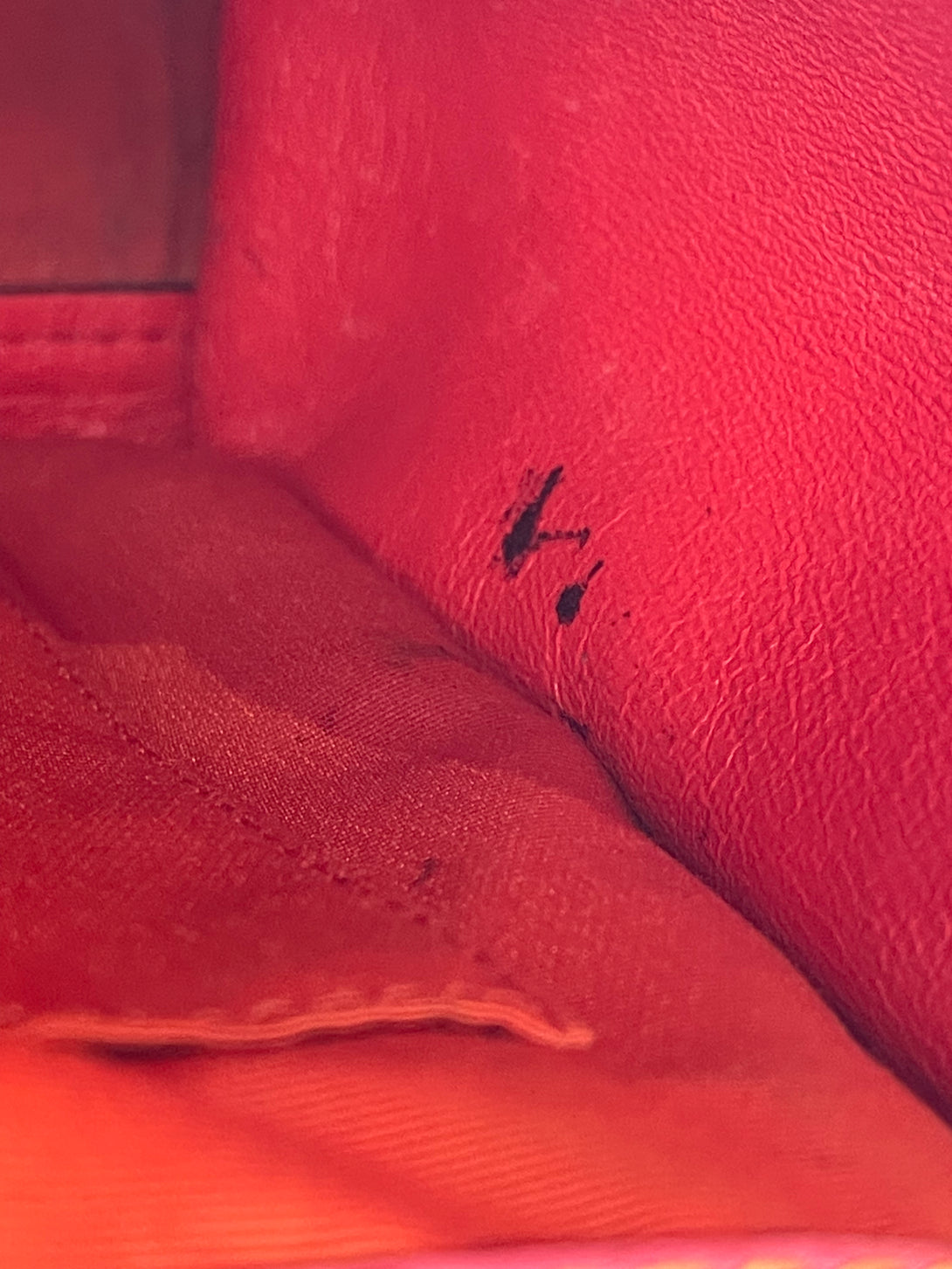 Good: Items show more prominent wear such as noticeable discoloration, stains and snags to fabric. May have worn corners and handles, tarnishing to hardware and creasing to leather. Pen or make up marks may be visible in the interior of the bag.