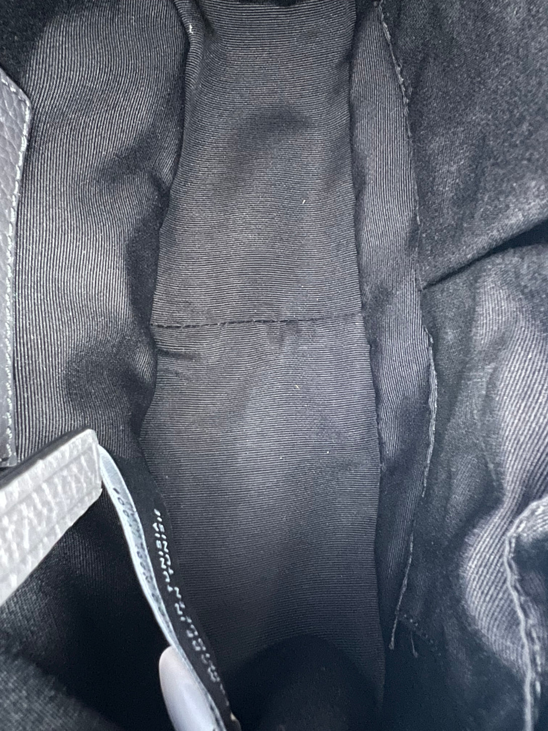 Good: Items show more prominent wear such as noticeable discoloration, stains and snags to fabric. May have worn corners and handles, tarnishing to hardware and creasing to leather. Pen or make up marks may be visible in the interior of the bag.