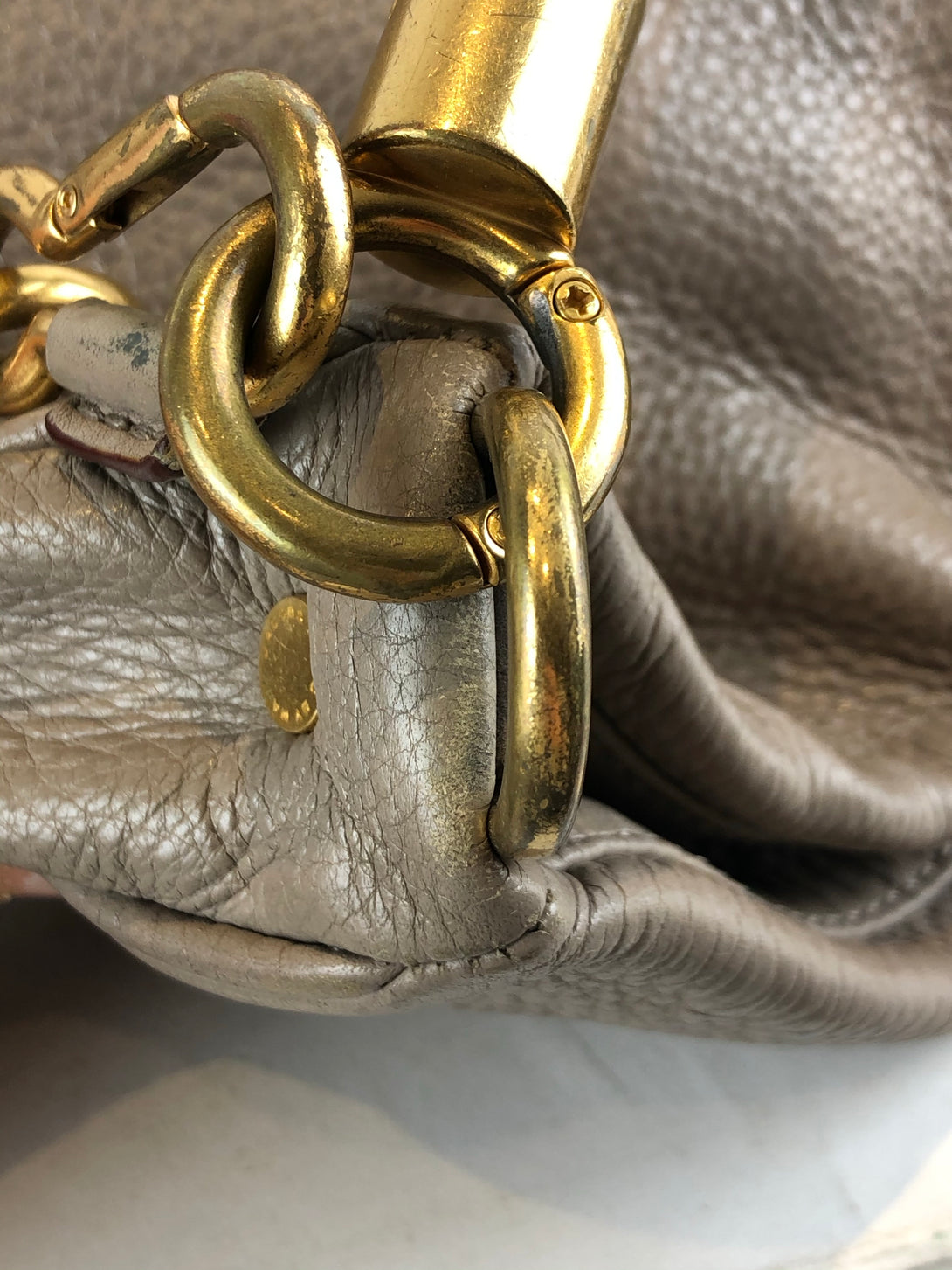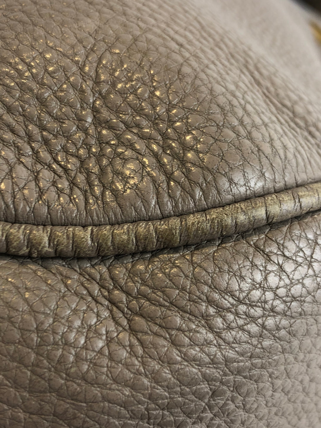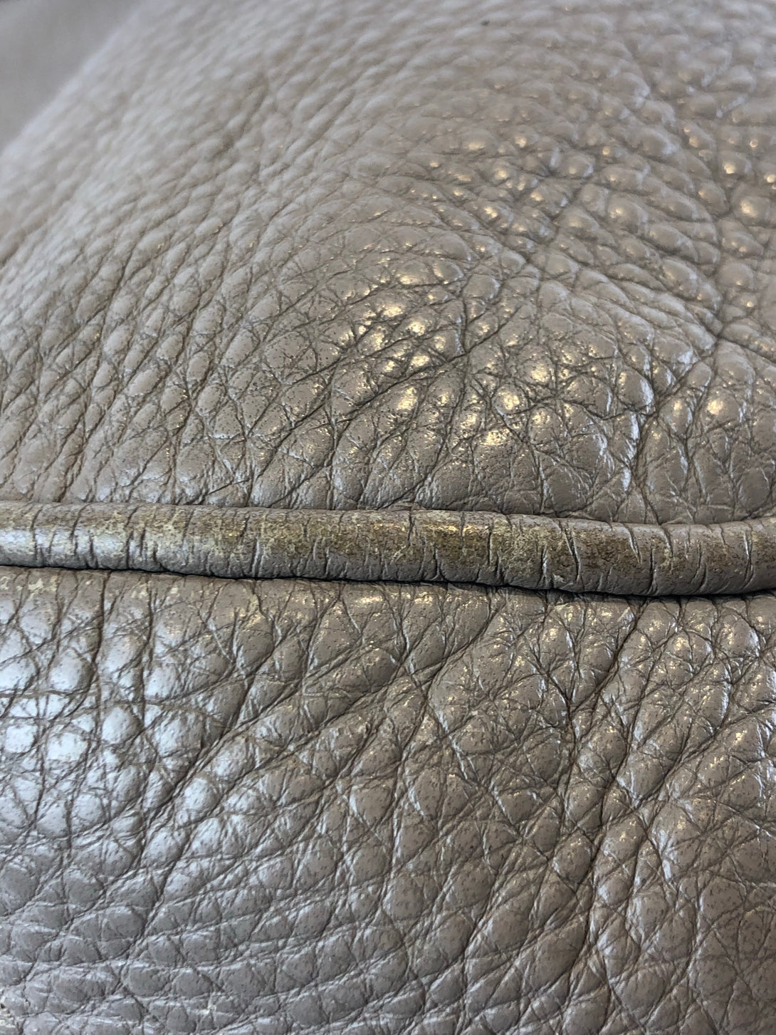 Good: Items show more prominent wear such as noticeable discoloration, stains and snags to fabric. May have worn corners and handles, tarnishing to hardware and creasing to leather. Pen or make up marks may be visible in the interior of the bag.
