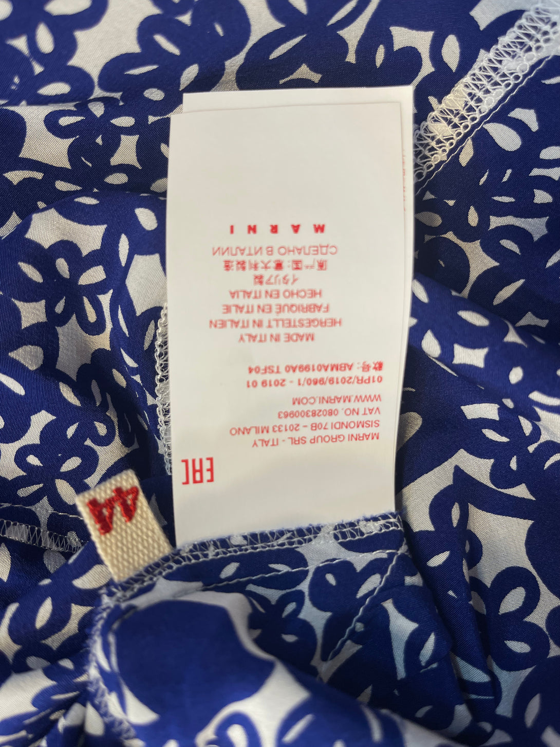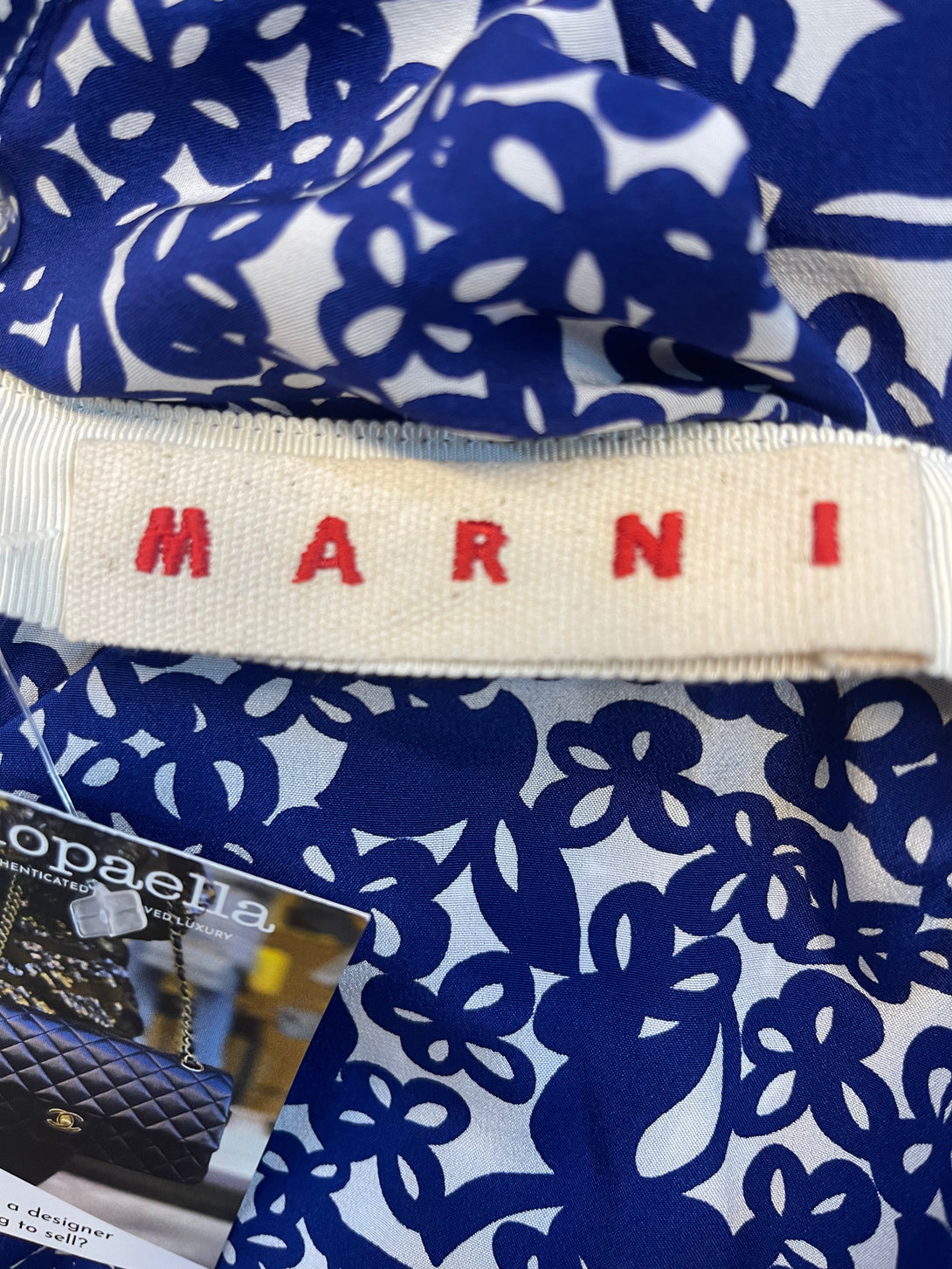 Marni 100% Silk Blue Printed Dress with Peter Pan Collar - UK 14