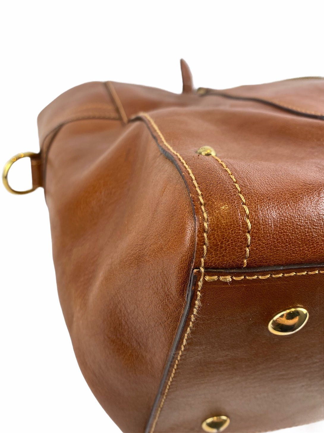 Good: Items show more prominent wear such as noticeable discoloration, stains and snags to fabric. May have worn corners and handles, tarnishing to hardware and creasing to leather. Pen or make up marks may be visible in the interior of the bag.