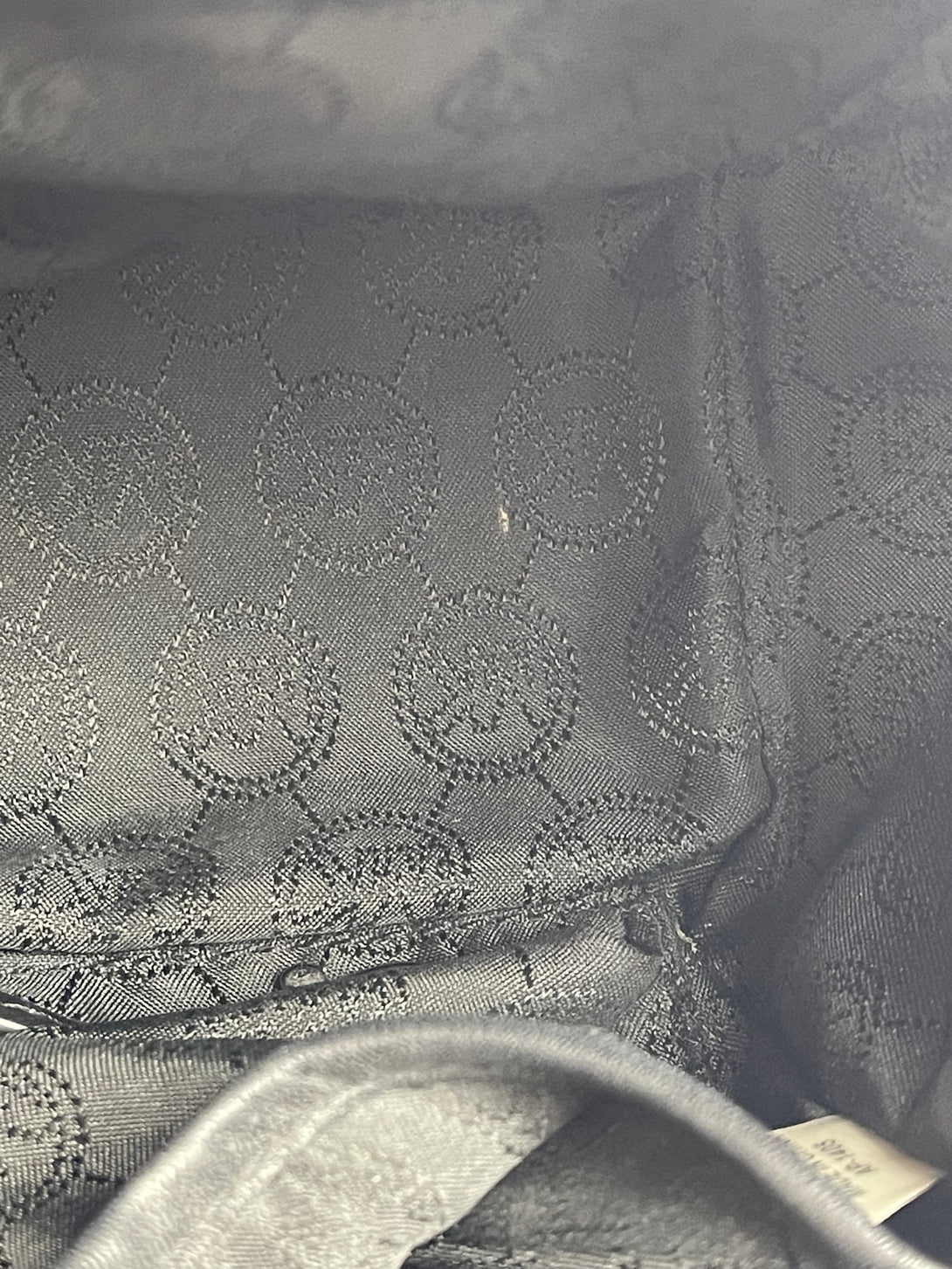 Good: Items show more prominent wear such as noticeable discoloration, stains and snags to fabric. May have worn corners and handles, tarnishing to hardware and creasing to leather. Pen or make up marks may be visible in the interior of the bag.