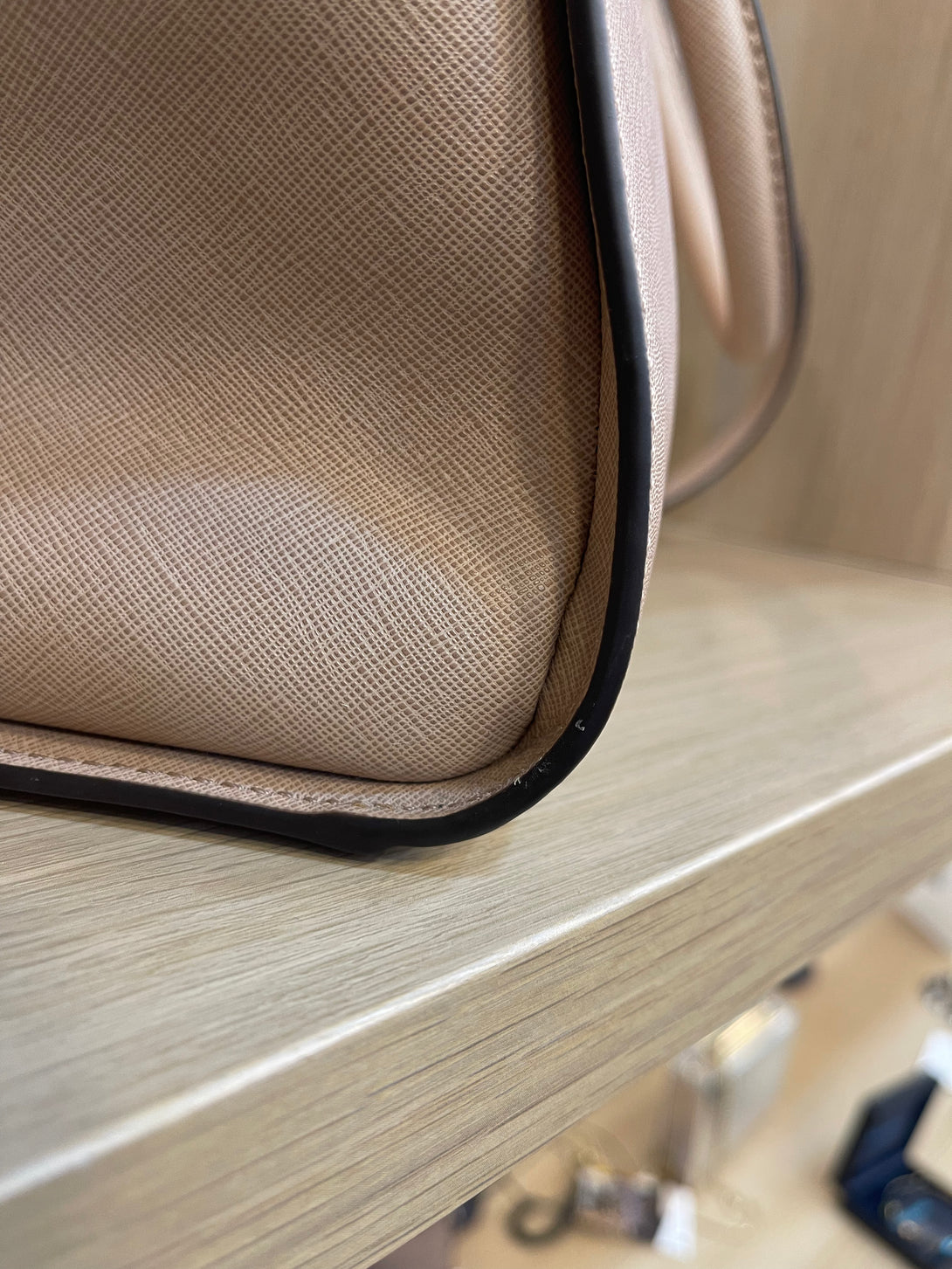 Fair: Very prominent wear, may have holes on corners, severe scuffs, piping of bag showing and pen marks to exterior. Interior may have pen or make up marks.