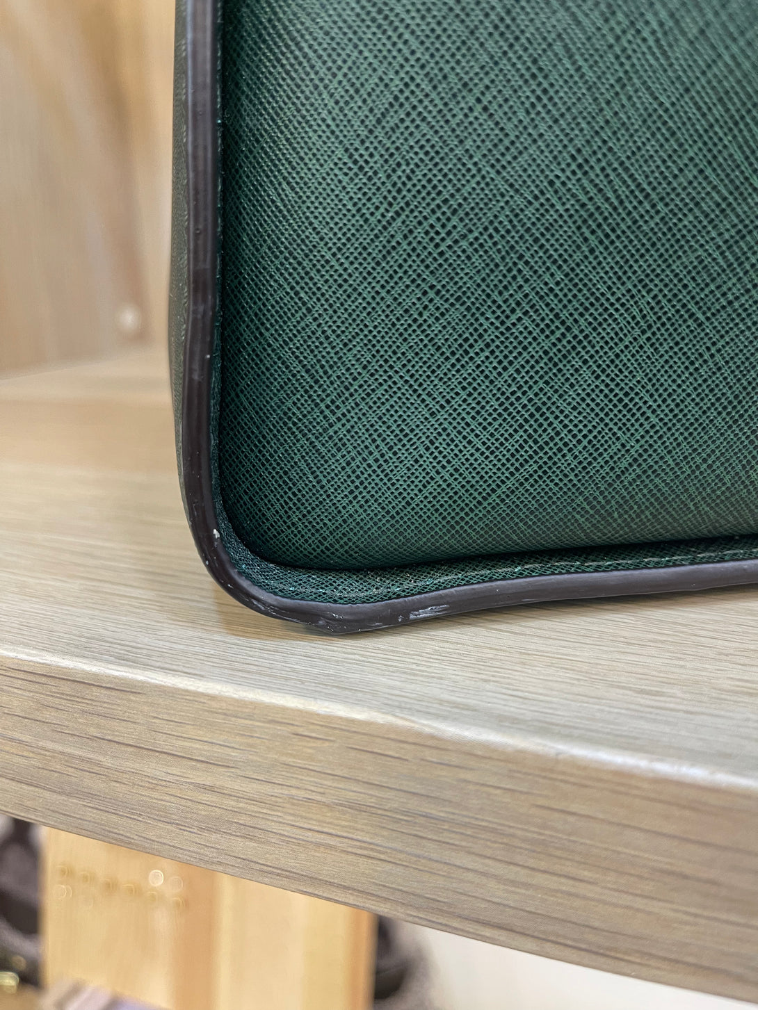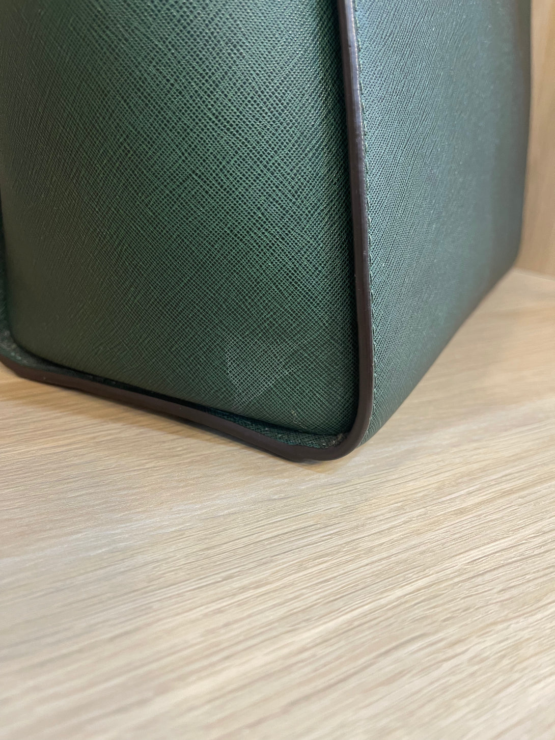 Fair: Very prominent wear, may have holes on corners, severe scuffs, piping of bag showing and pen marks to exterior. Interior may have pen or make up marks.
