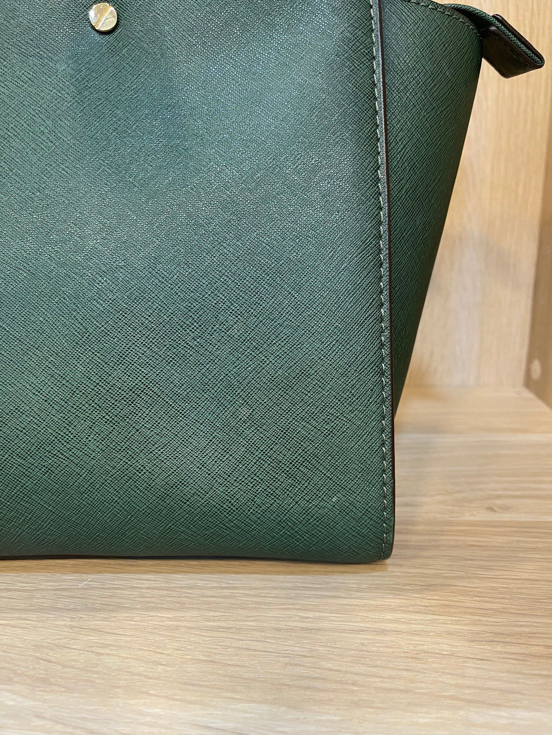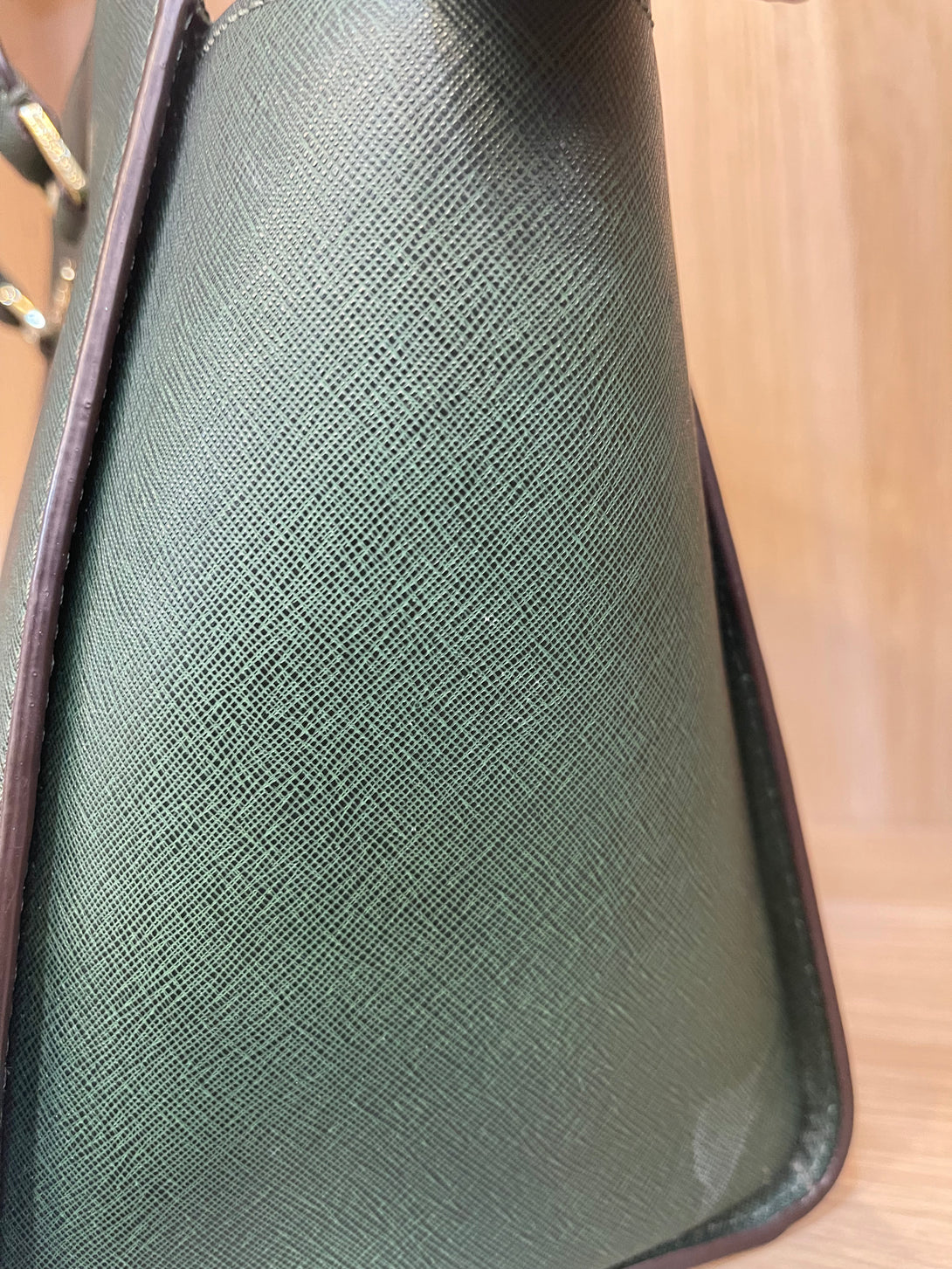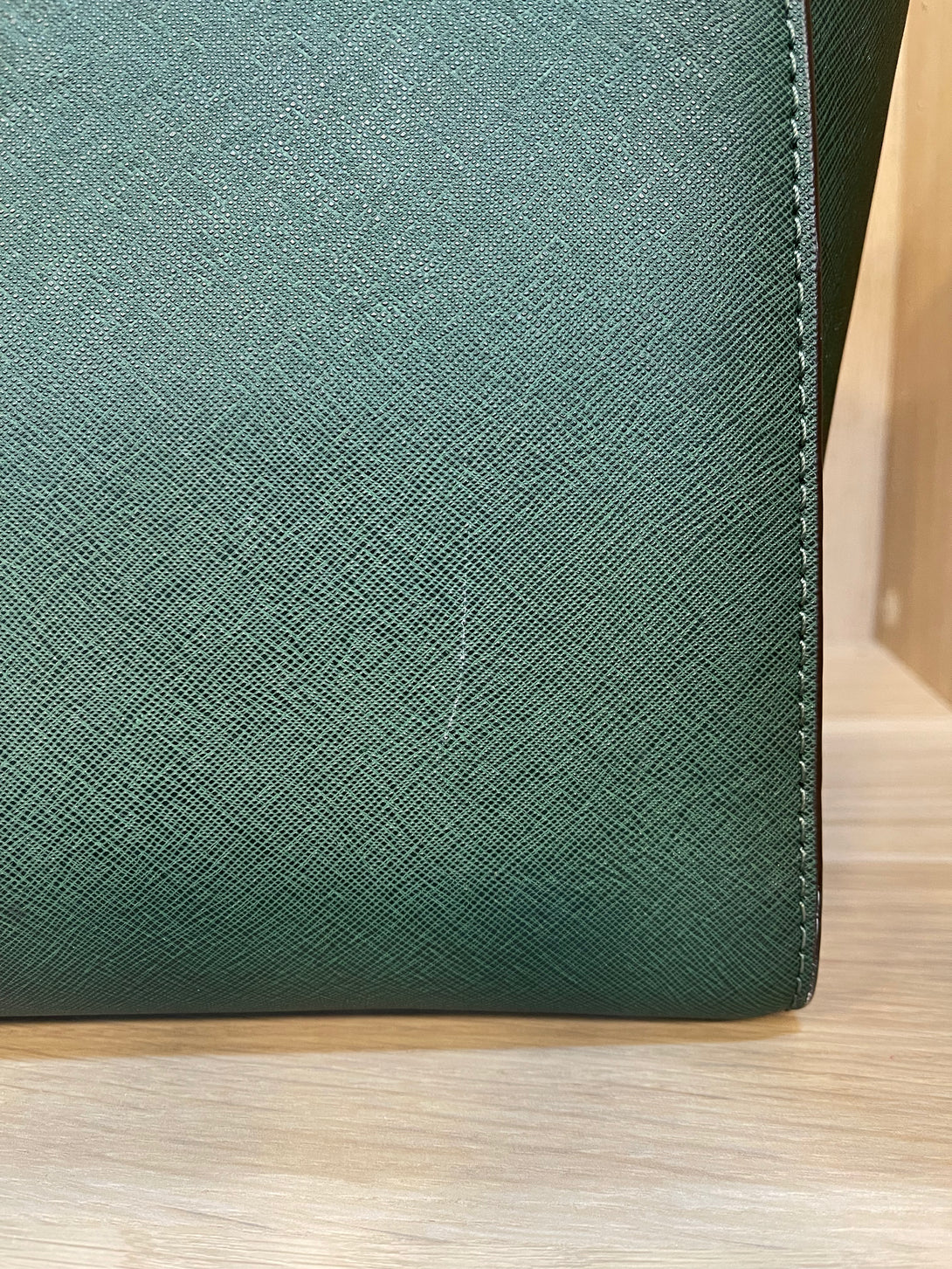 Good: Items show more prominent wear such as noticeable discoloration, stains and snags to fabric. May have worn corners and handles, tarnishing to hardware and creasing to leather. Pen or make up marks may be visible in the interior of the bag.