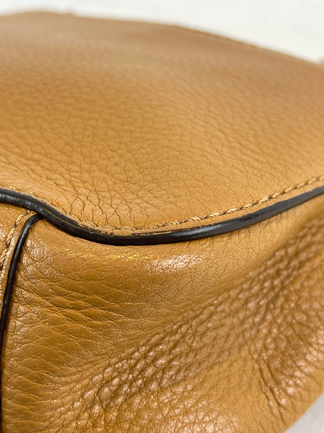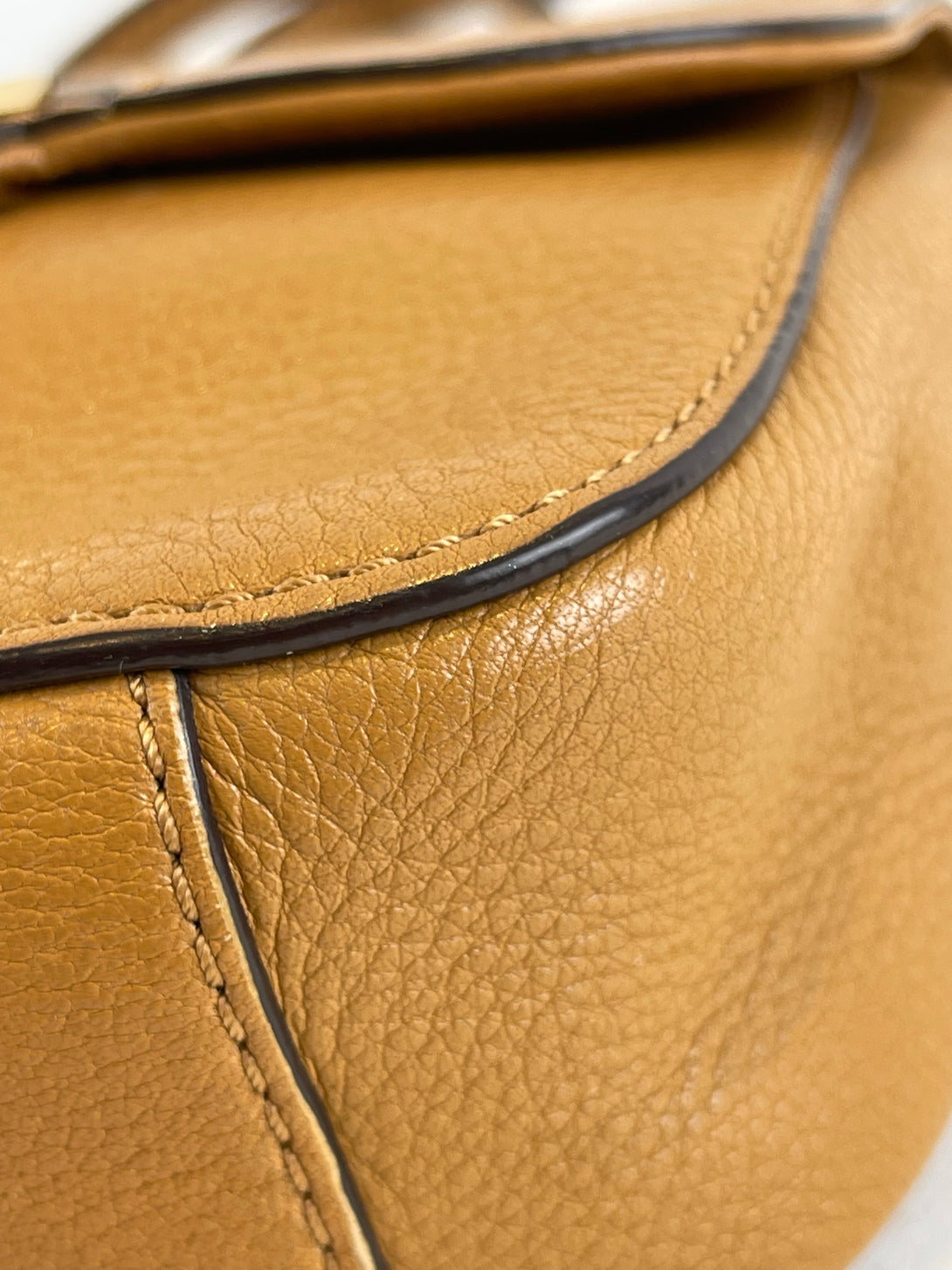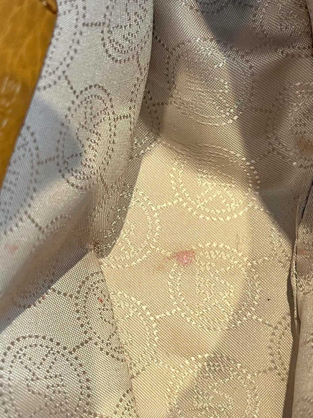 Good: Items show more prominent wear such as noticeable discoloration, stains and snags to fabric. May have worn corners and handles, tarnishing to hardware and creasing to leather. Pen or make up marks may be visible in the interior of the bag.