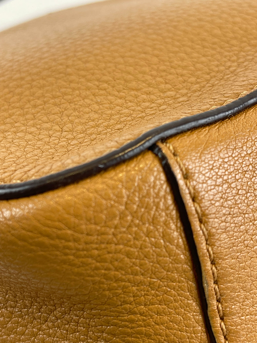 Fair: Very prominent wear, may have holes on corners, severe scuffs, piping of bag showing and pen marks to exterior. Interior may have pen or make up marks.