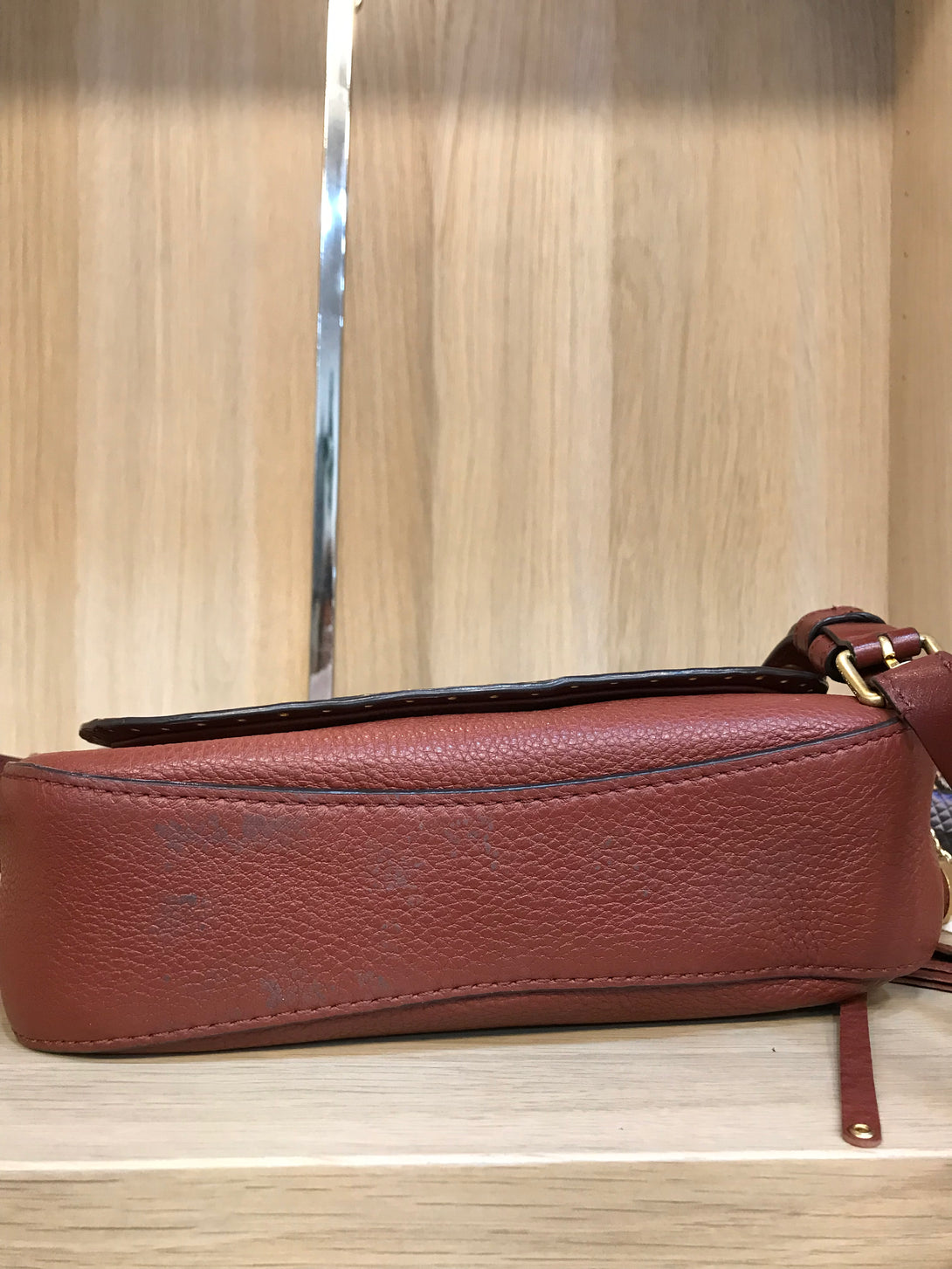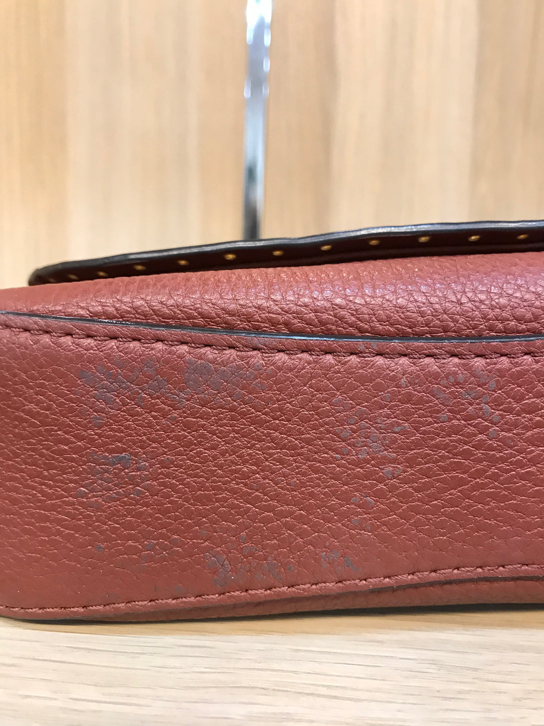 Fair: Very prominent wear, may have holes on corners, severe scuffs, piping of bag showing and pen marks to exterior. Interior may have pen or make up marks.